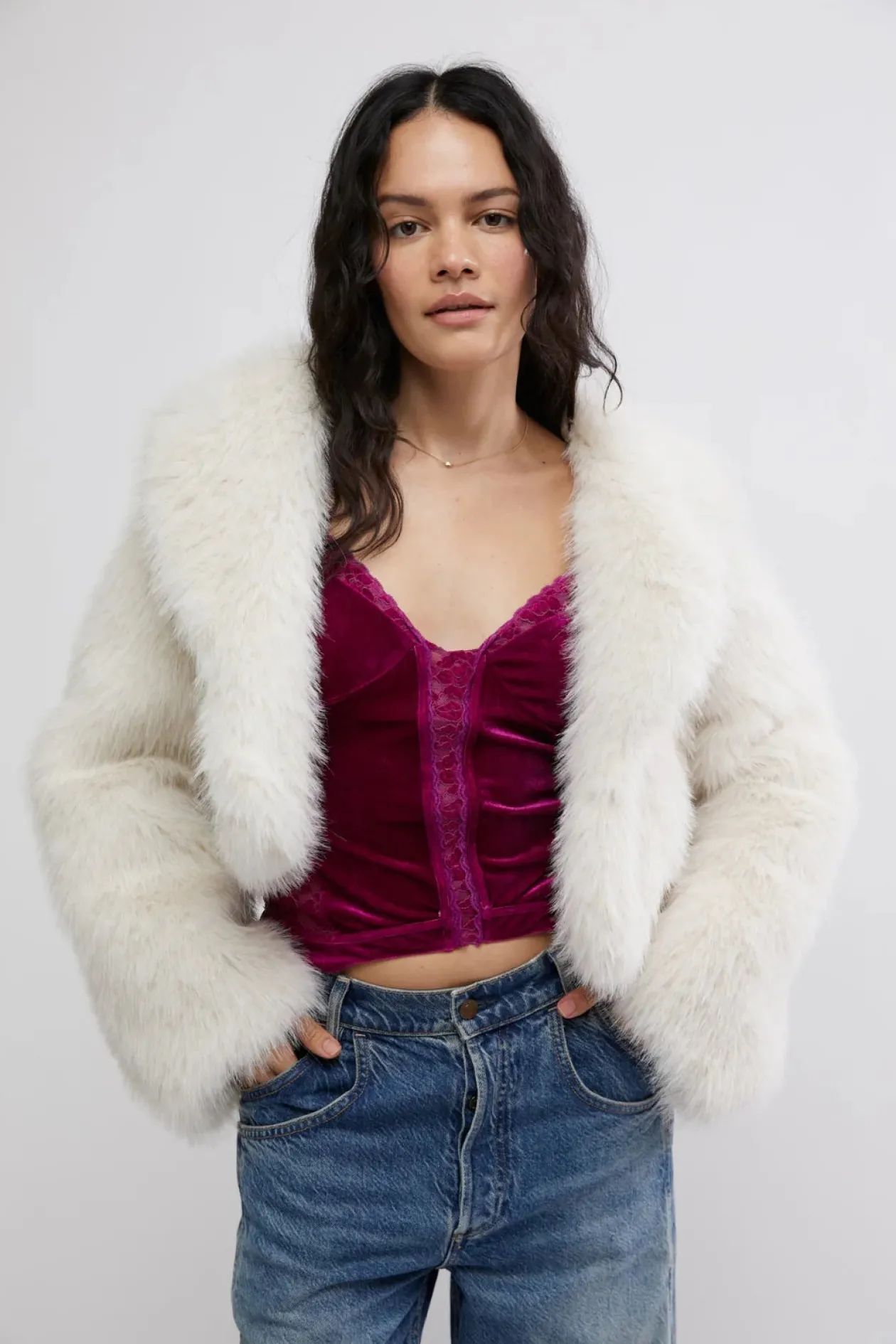 The Free People About Last Night Corset top has spaghetti straps which are adjustable and is cut out in the back. The top also has a knitted design along the sides, down the middle and above the breast area. Paired with a black leather mini skirt this top would be great for a girls night out.