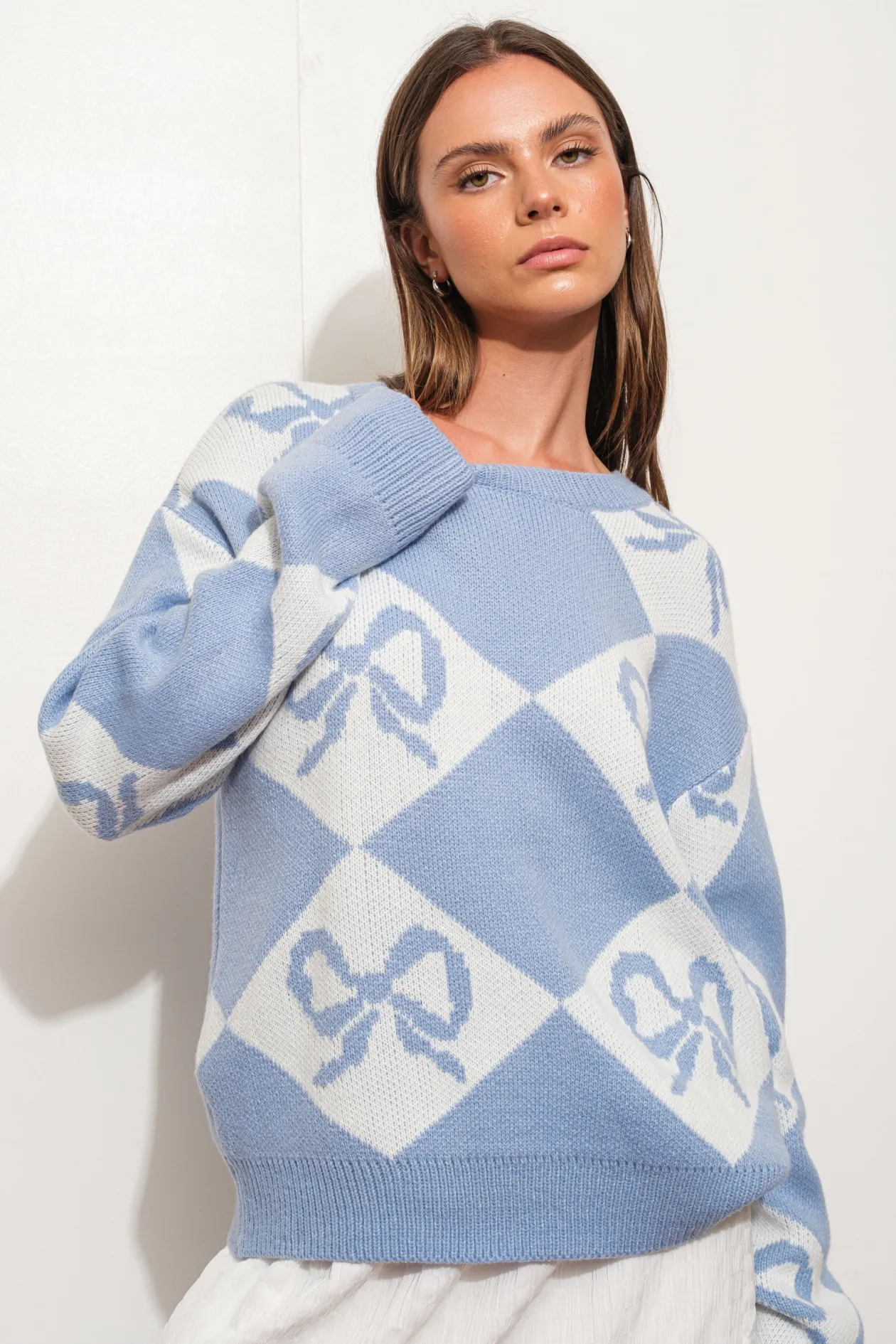 Super soft and meant to be oversized, our Adalynn sweater has a classic girly bow print.