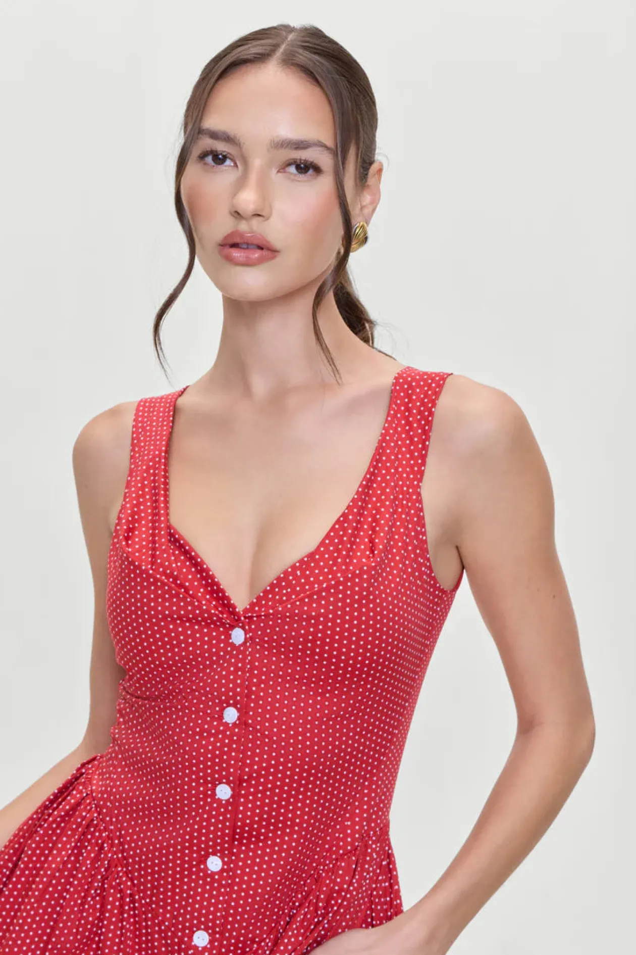 This tailored mini dress features a wide neckline and functional buttons down the front. The Charlotte Mini Dress will make you feel your prettiest, whether you’re heading to a spring brunch or dancing through the night.