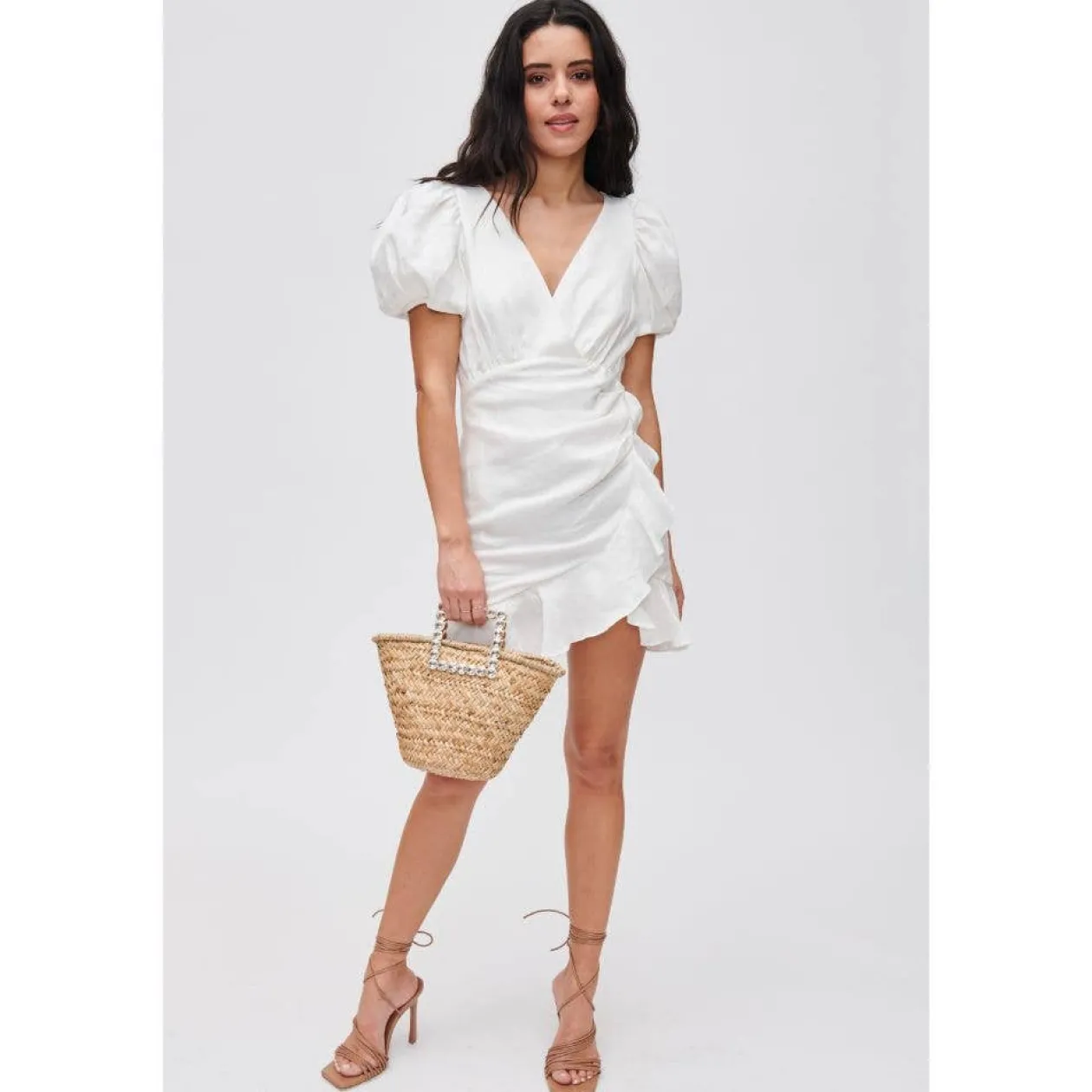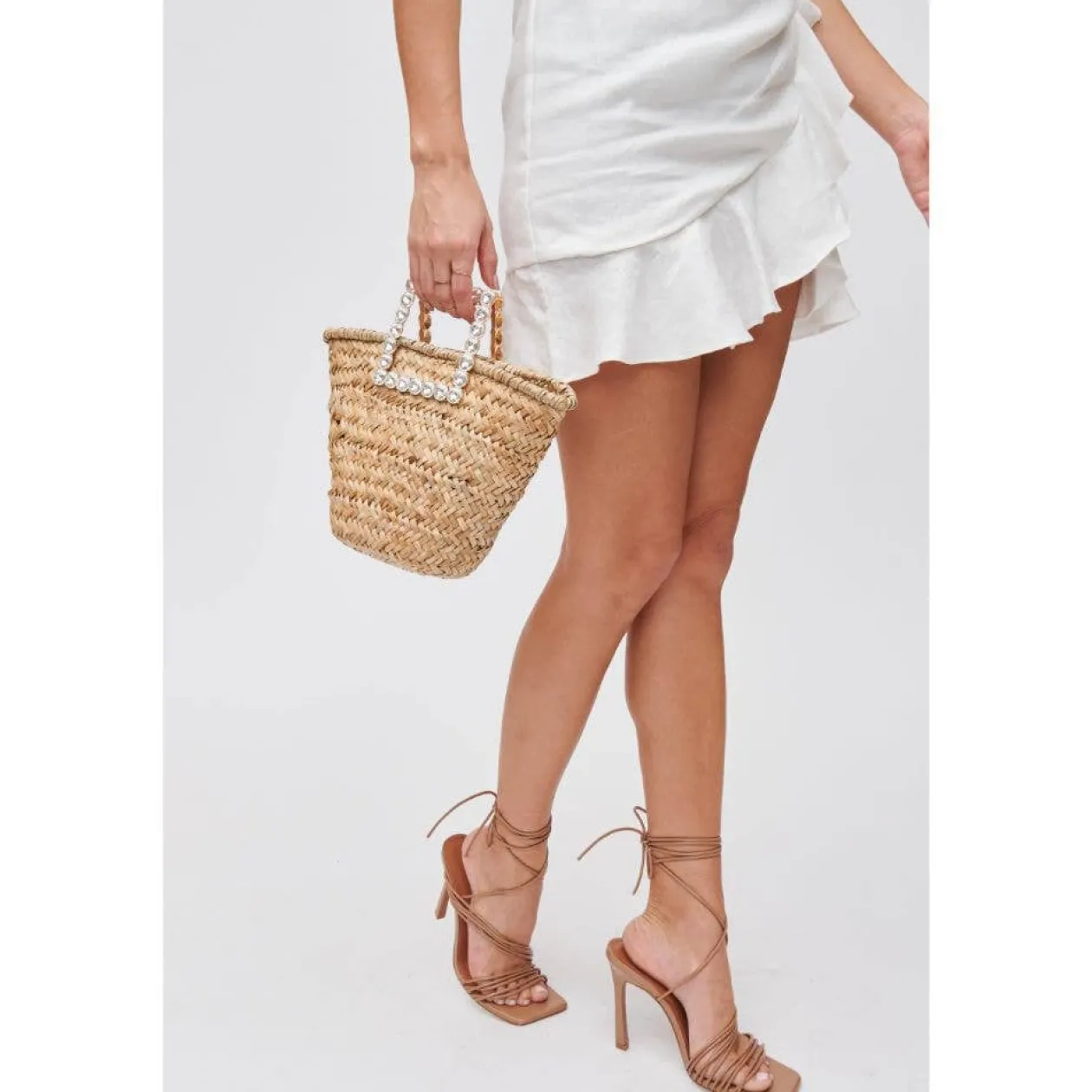 This trend-setting bag is made with woven straw all over, giving it a unique and natural aesthetic. Plus, with golden hardware and a rhinestone handle, you can take your look up a notch while also giving off a sophisticated vibe. And if that wasn’t enough, on the inside you can find 1 zipper pocket and 1 slip pocket for keeping your accessories organized. Chasity is here to make sure you stay fashionable and make a statement wherever you go—it’s time to show off that fun, sassy attitude of yours! So go ahead—look good while doing it all!*Item Type: Tote*Material: Straw*Closure: Magnet*Handle Drop: 1.75″*Exterior Details: Woven straw all-over, rhinestone handle, gold hardware*Inside Features: Fabric lined, 1 zipper pocket, 1 slip pocket