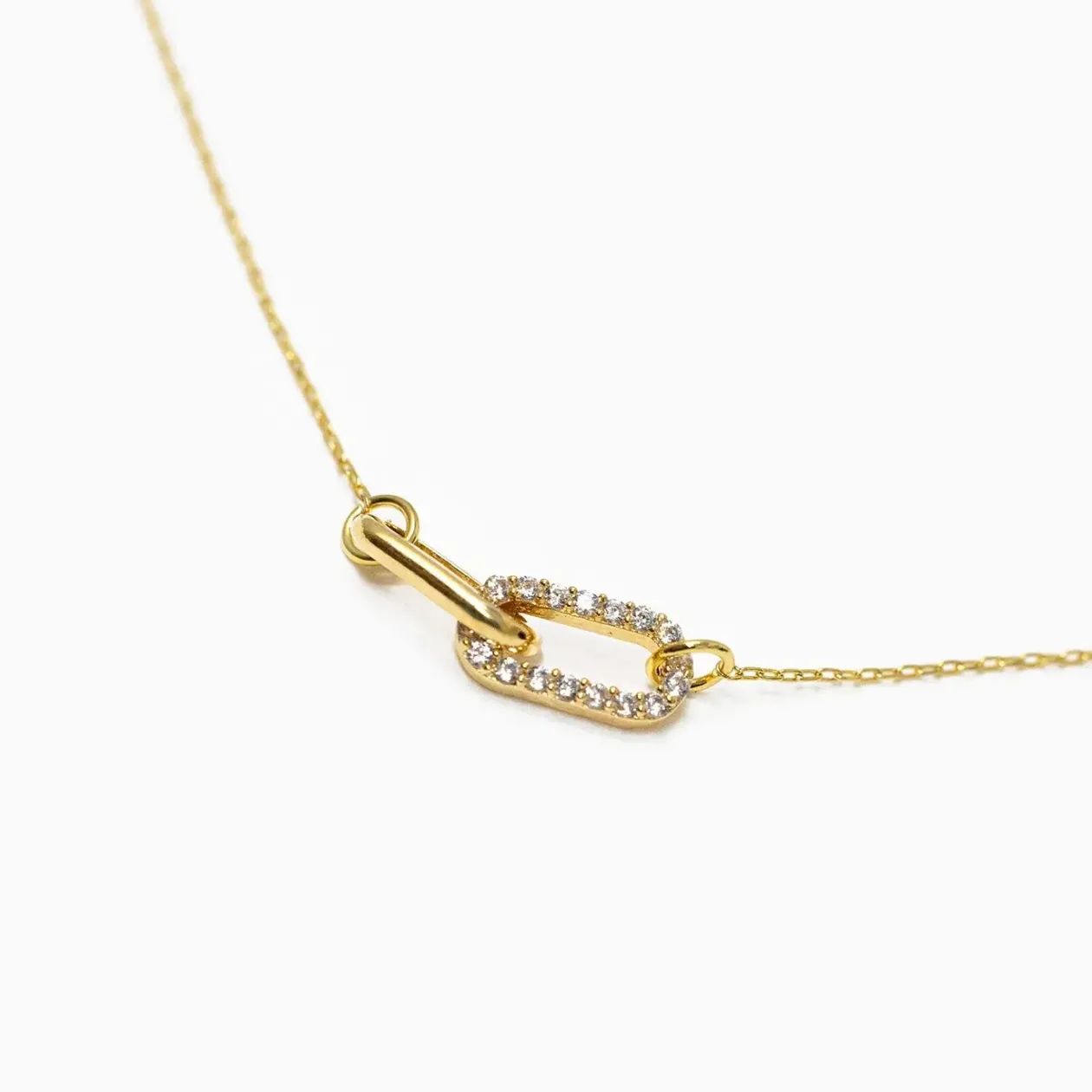 The sparkling CZ stones create a striking contrast against the sleek metal link, making this necklace a dainty statement piece.
