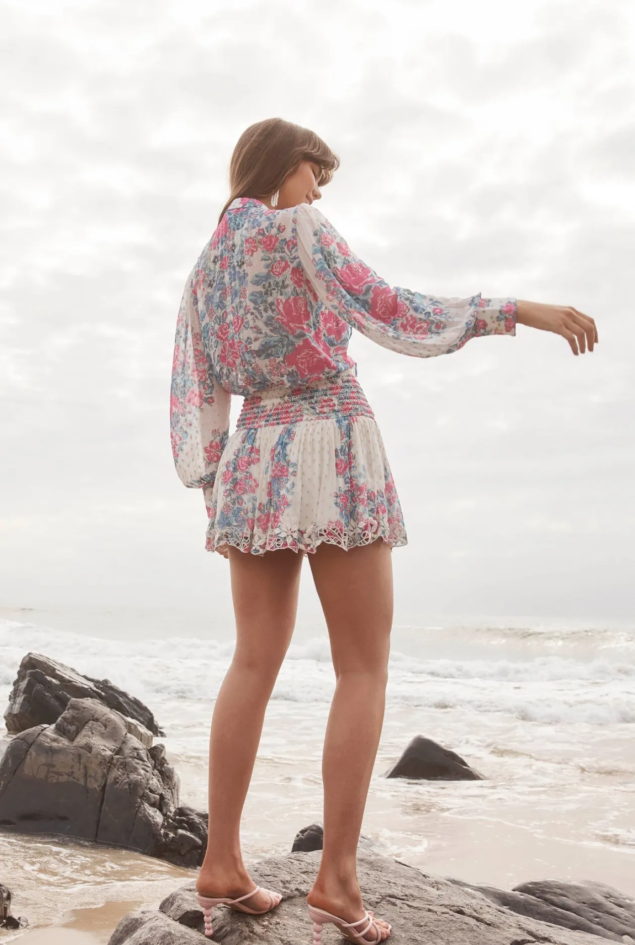 - Shirred waist and embroidered hem