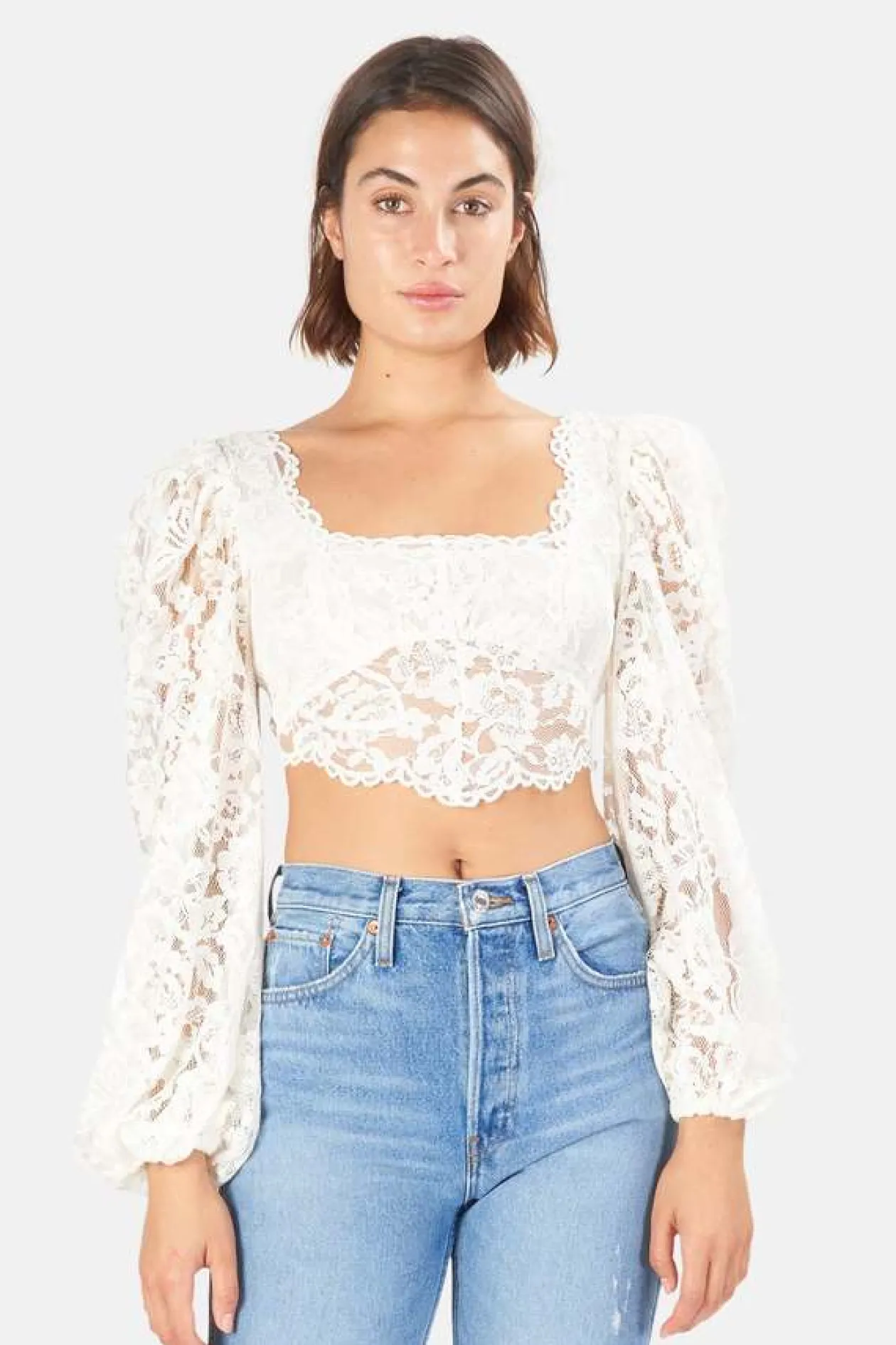 White Corded Lace Crop Top – Romantic Elegance with Intricate Details.
