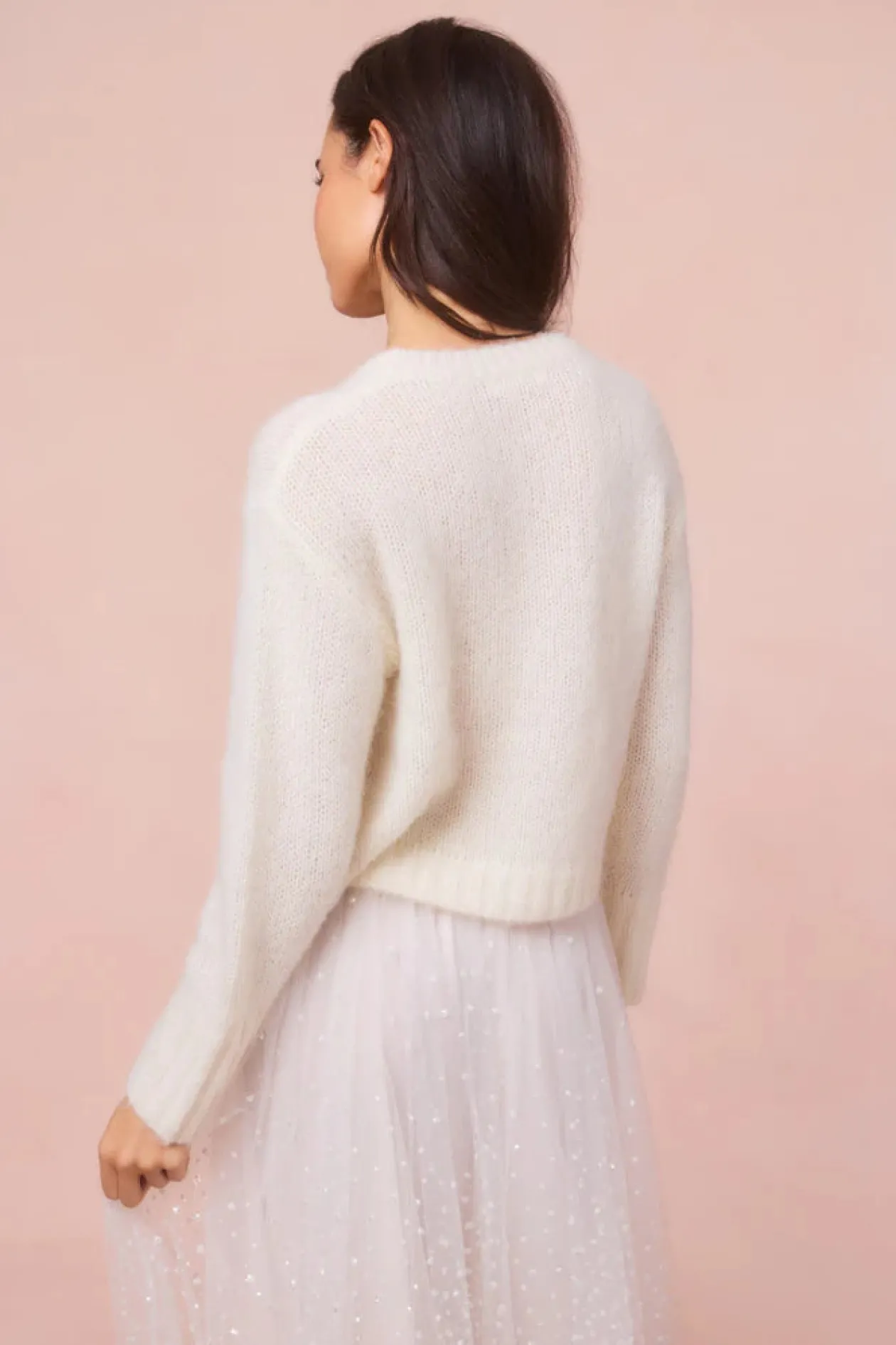 Cozy and chic in the Jorah Pullover. Because everything’s better with a bow, this charming off-gauge knit is designed from a warm, alpaca blend featuring a large bow on the front. Pair with a Ruffle Mini Skirt or your favorite vintage denim.