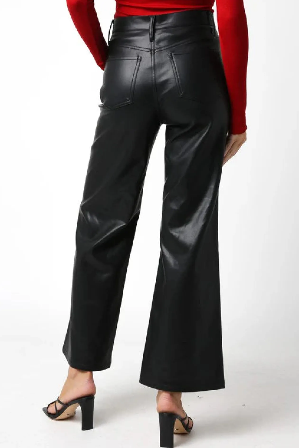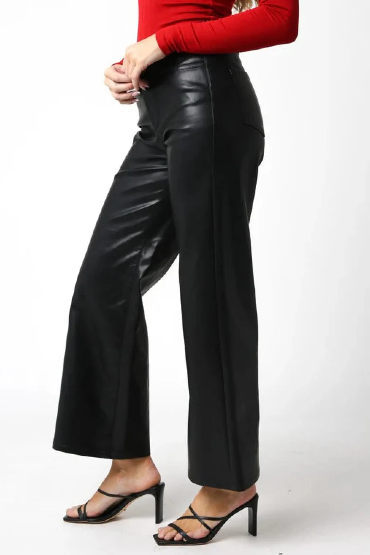 Upgrade your wardrobe with the chic Jordin Vegan Leather Pants in classic black. Featuring a stylish button closure, wide-leg design, and full-length fit, these pants blend modern elegance with timeless appeal. Perfect for elevating any look, these vegan leather pants are a must-have for fashion-forward individuals. Ideal for day-to-night transitions, pair them with your favorite top for a standout ensemble.