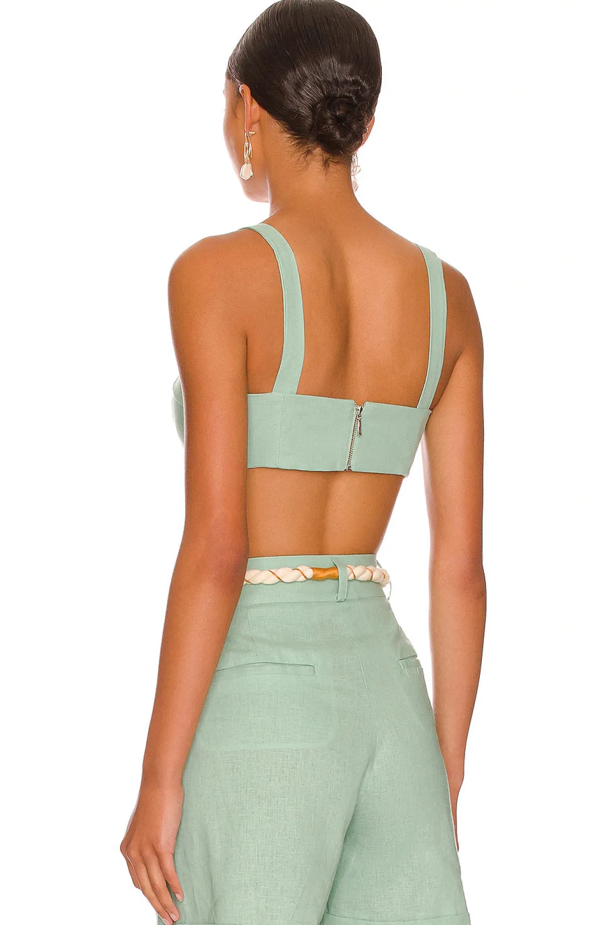 The PatBO Linen Bralette Top in Limestone is the ultimate blend of elegance and effortlessness. Featuring a striking jute trim ring accent at the bust and an exposed back zipper closure, this top adds a touch of sophistication to your summer wardrobe. Crafted from lightweight linen and viscose mix, it offers breathability and comfort, perfect for warm-weather styling. Pair it with high-waisted bottoms or matching shorts. Layer it under a chic blazer for a versatile, head-turning look.