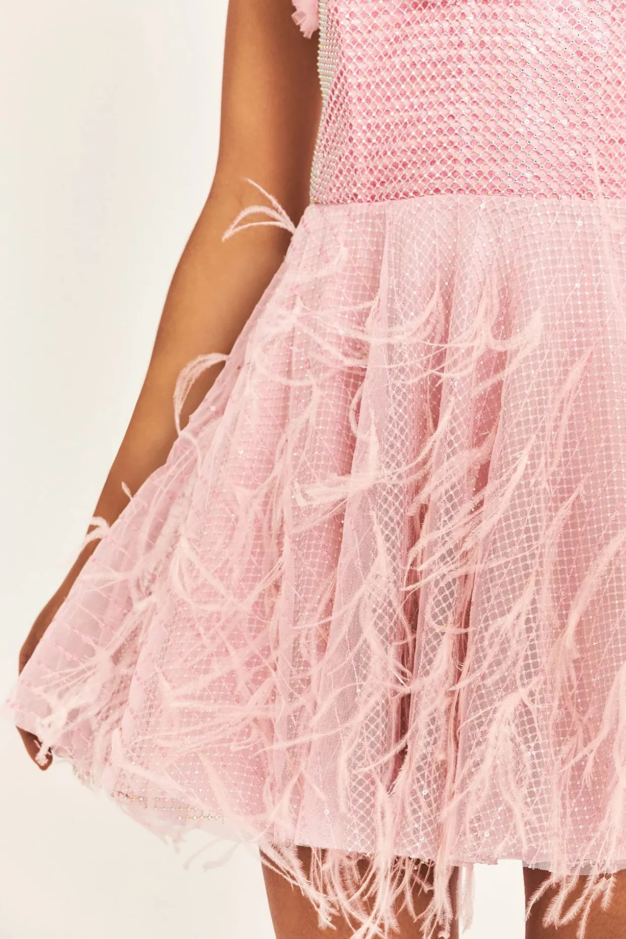Feather fantasies arrive in our new Marvella Dress. This must-have party mini features a sweetheart neckline, top-applied ruffles on a structured bodice with boning, and a multi-layered skirt adorned with flirty hand-applied feathers. An exposed gold zipper is included on the center back for closure.