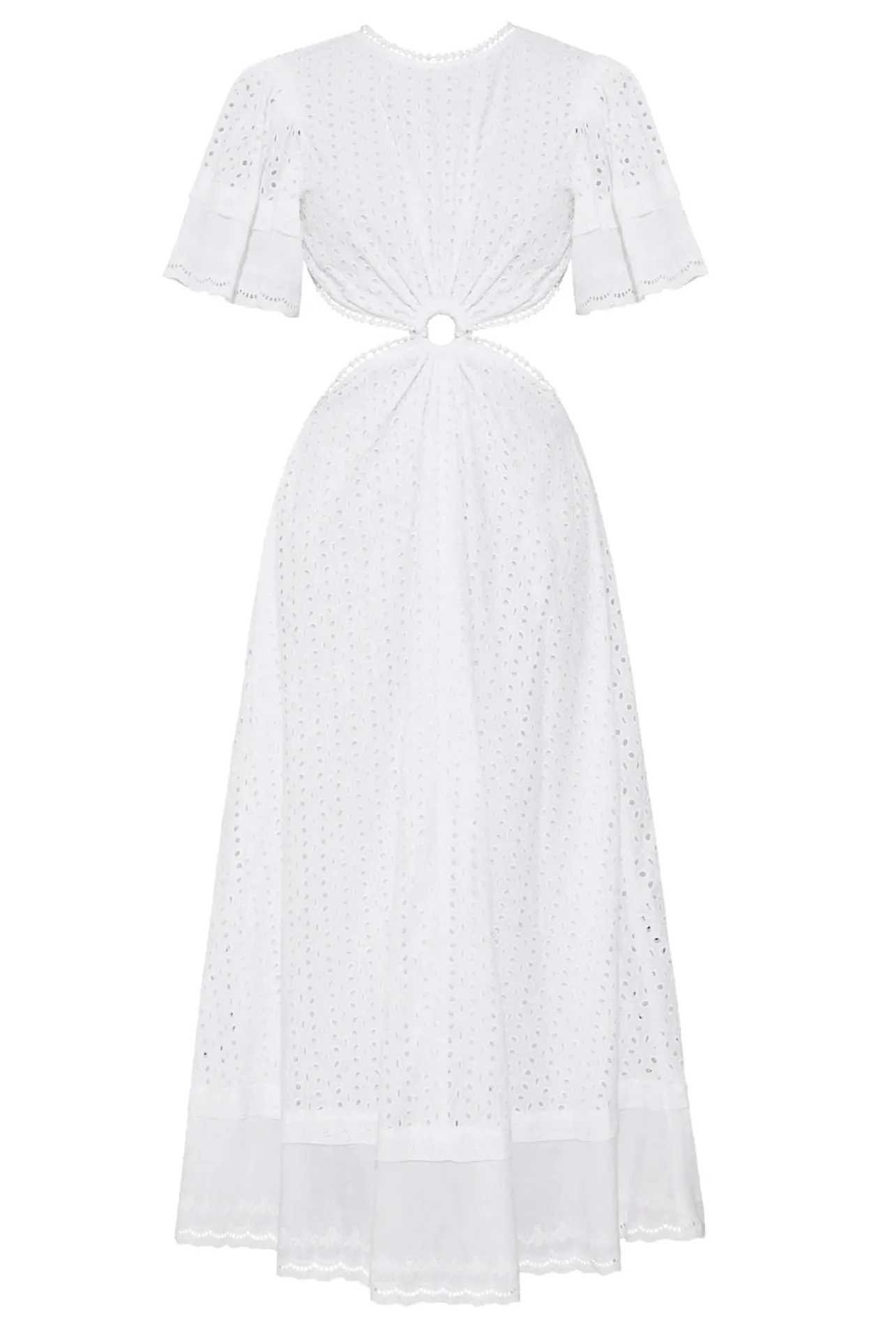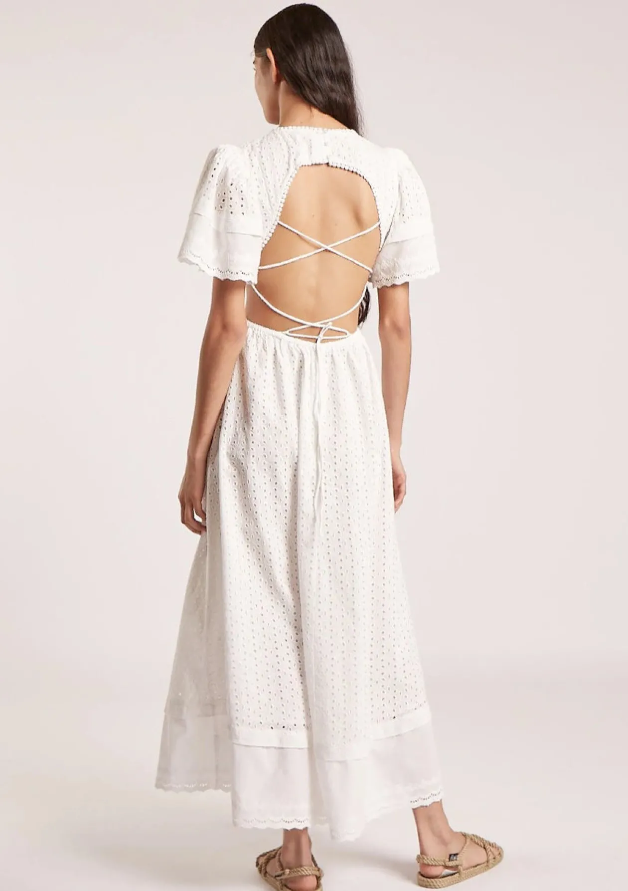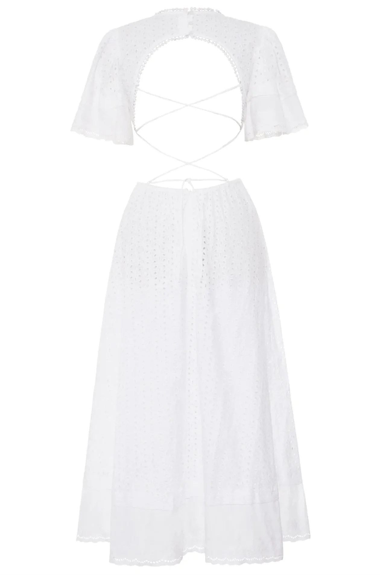 There she is! Our most beloved style, features puff sleeves, waist cut-outs and a laced open back. Made in cotton eyelet, the Caro dress is sophisticated, modern, and romantic, all rolled into one. Perfect for summer events and beyond, this dress is truly a hero.