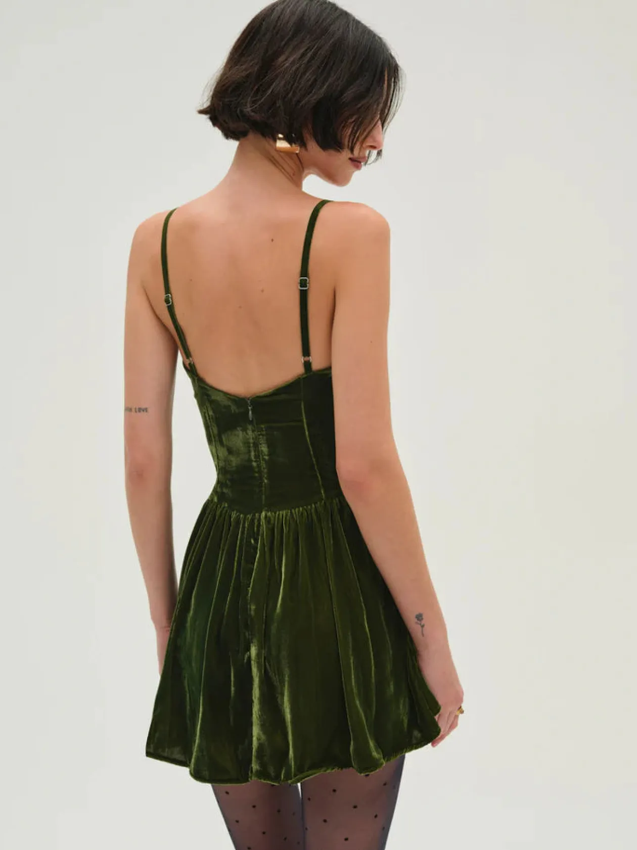 - The Martini Olive Velvet Mini Dress is designed to be fitted.