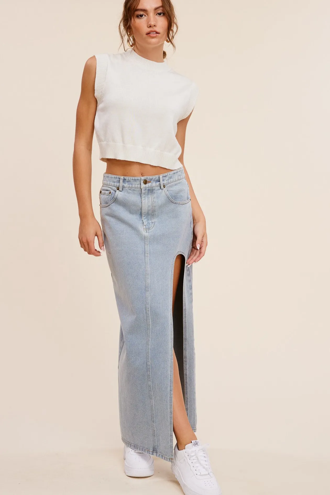 Stay comfortably stylish with this lightweight solid knit vest featuring a round neckline and ribbed edges. Wear it solo or layer it with a t-shirt underneath for a classic, vintage-inspired appearance.