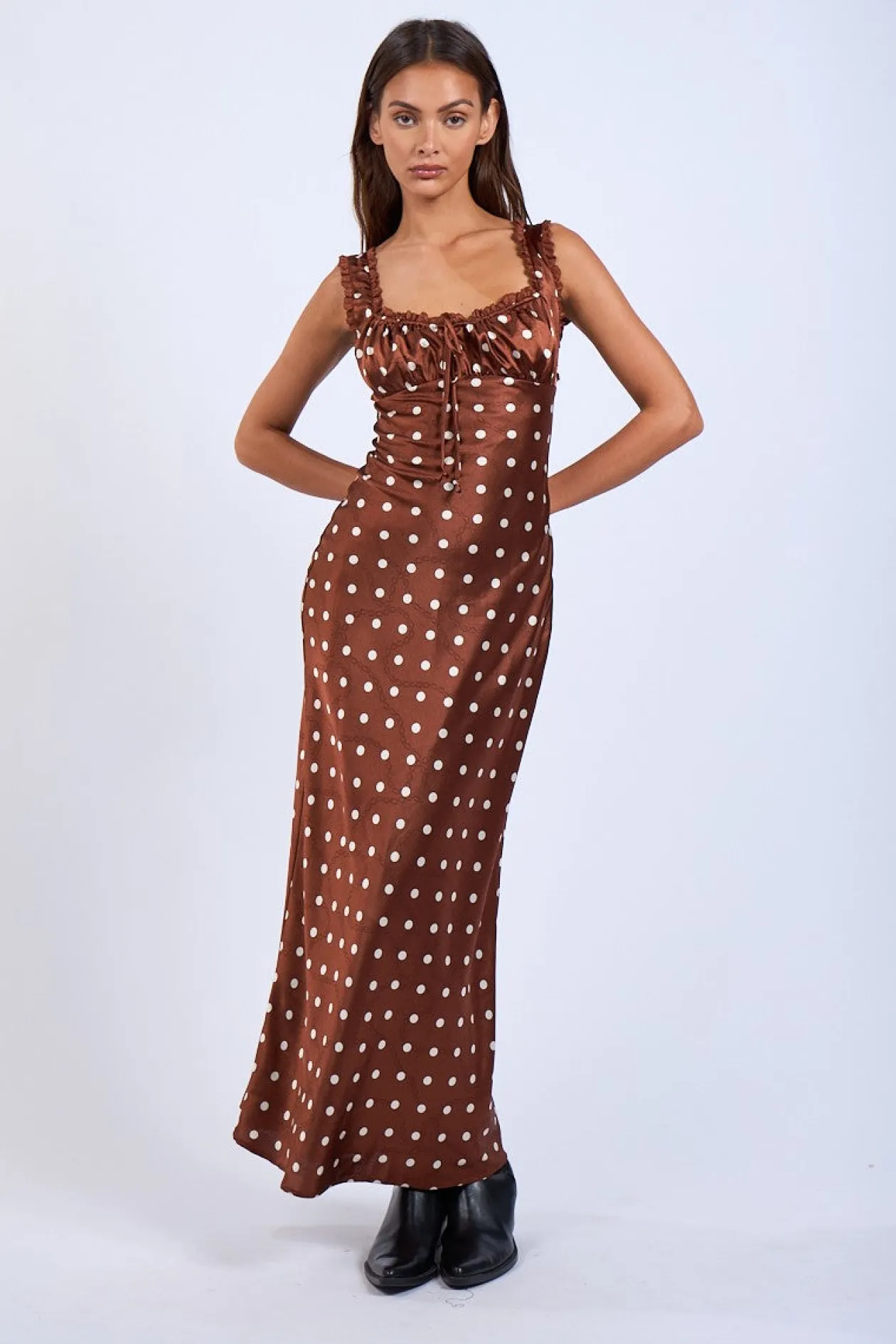 - Satin Brown Polka Dot Print