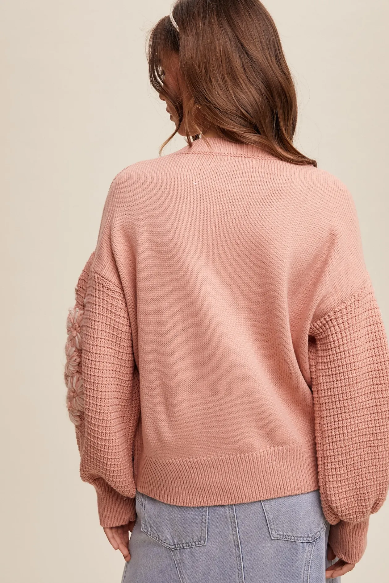 - Hand embroidered flower detail knit sweater
