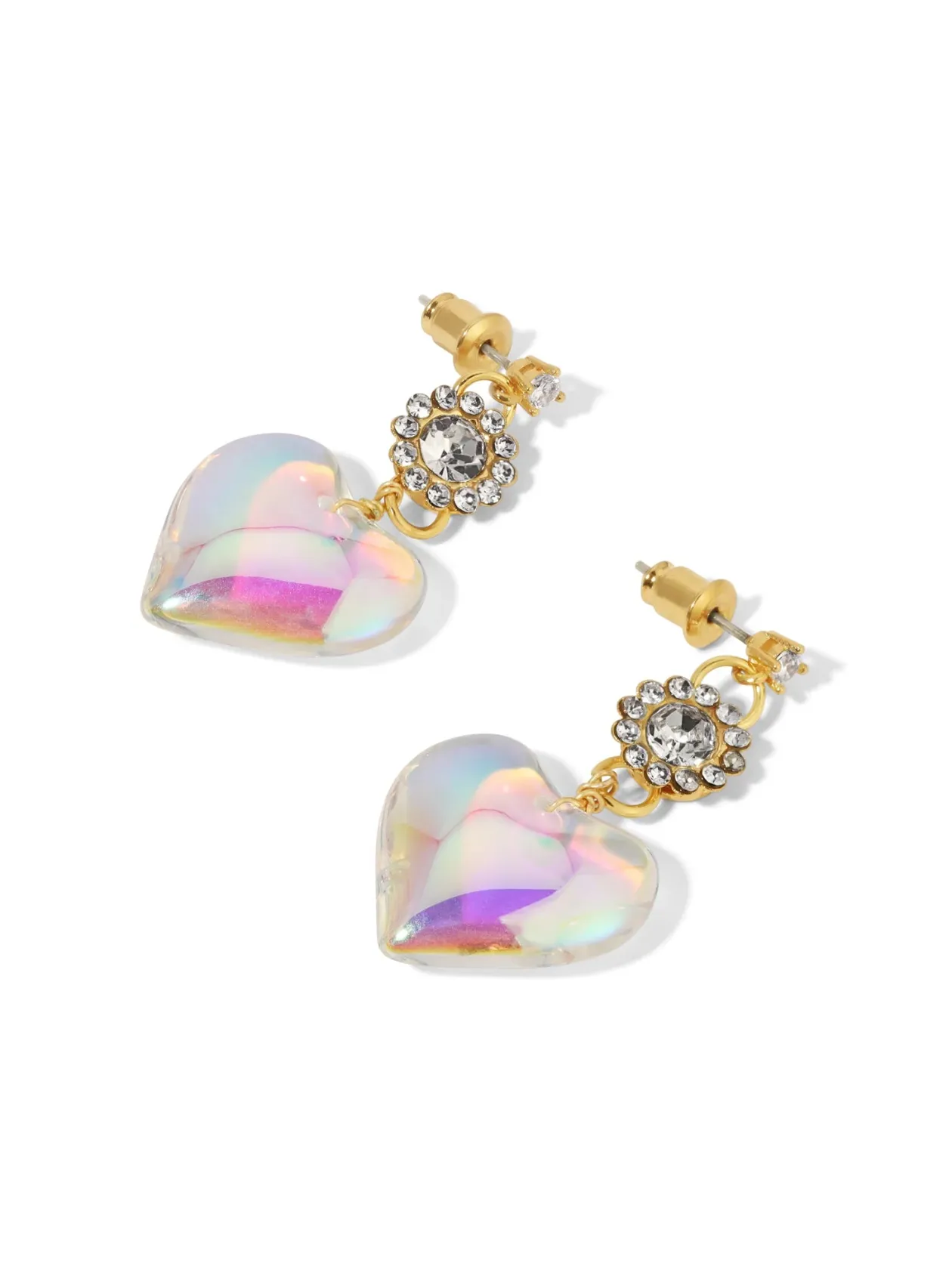 Features Irredecent Hearts charms with CZ flower and Crystal CZ stud Earrings