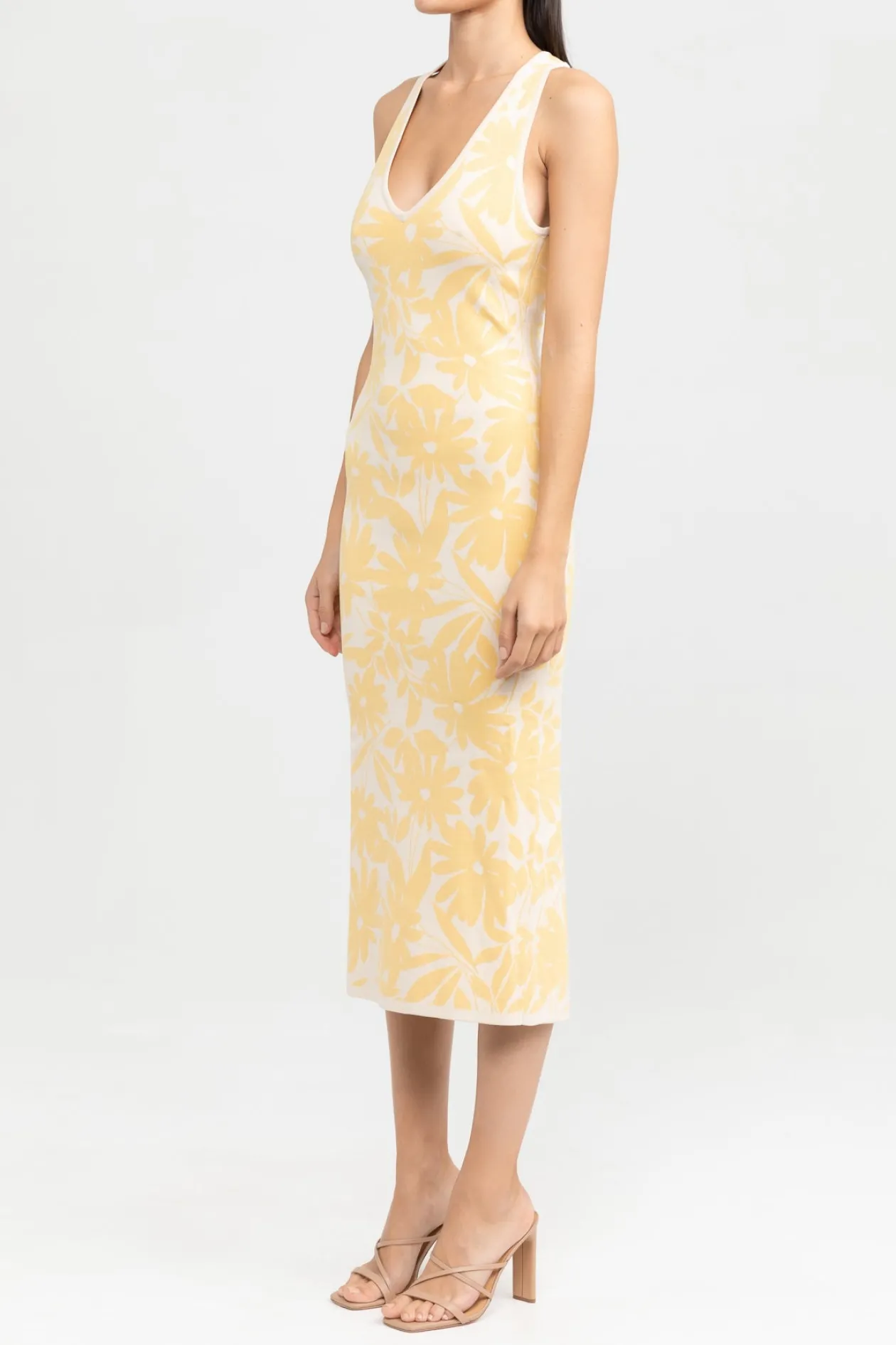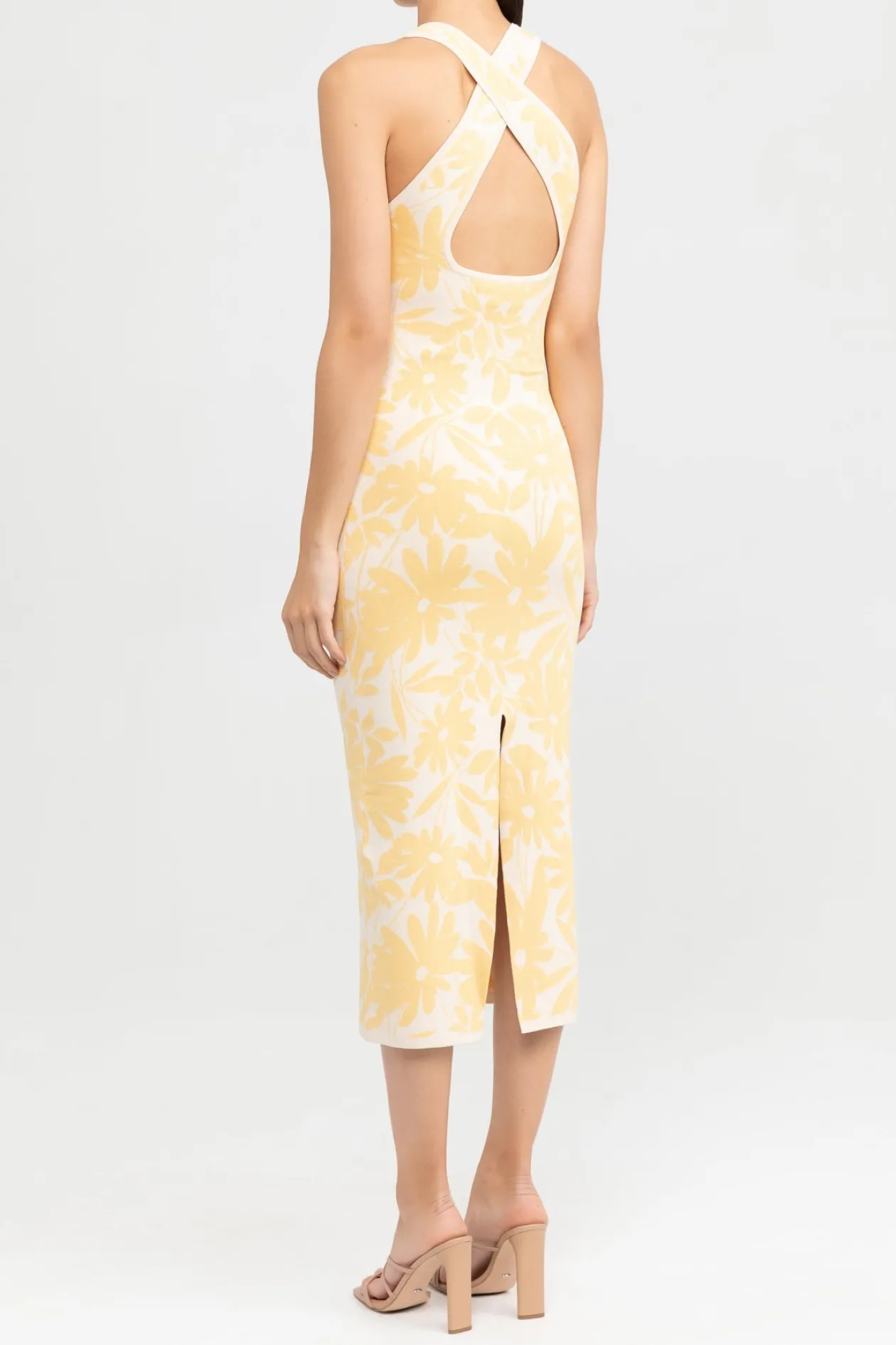 The Amari Knit Dress in Yellow Daisy is designed to be fitted at the bodice and relaxed toward the hem. Crafted from a beautiful knit fabrication , this style features a v-neckline and cross over back detail. A versatile piece for warmer days.