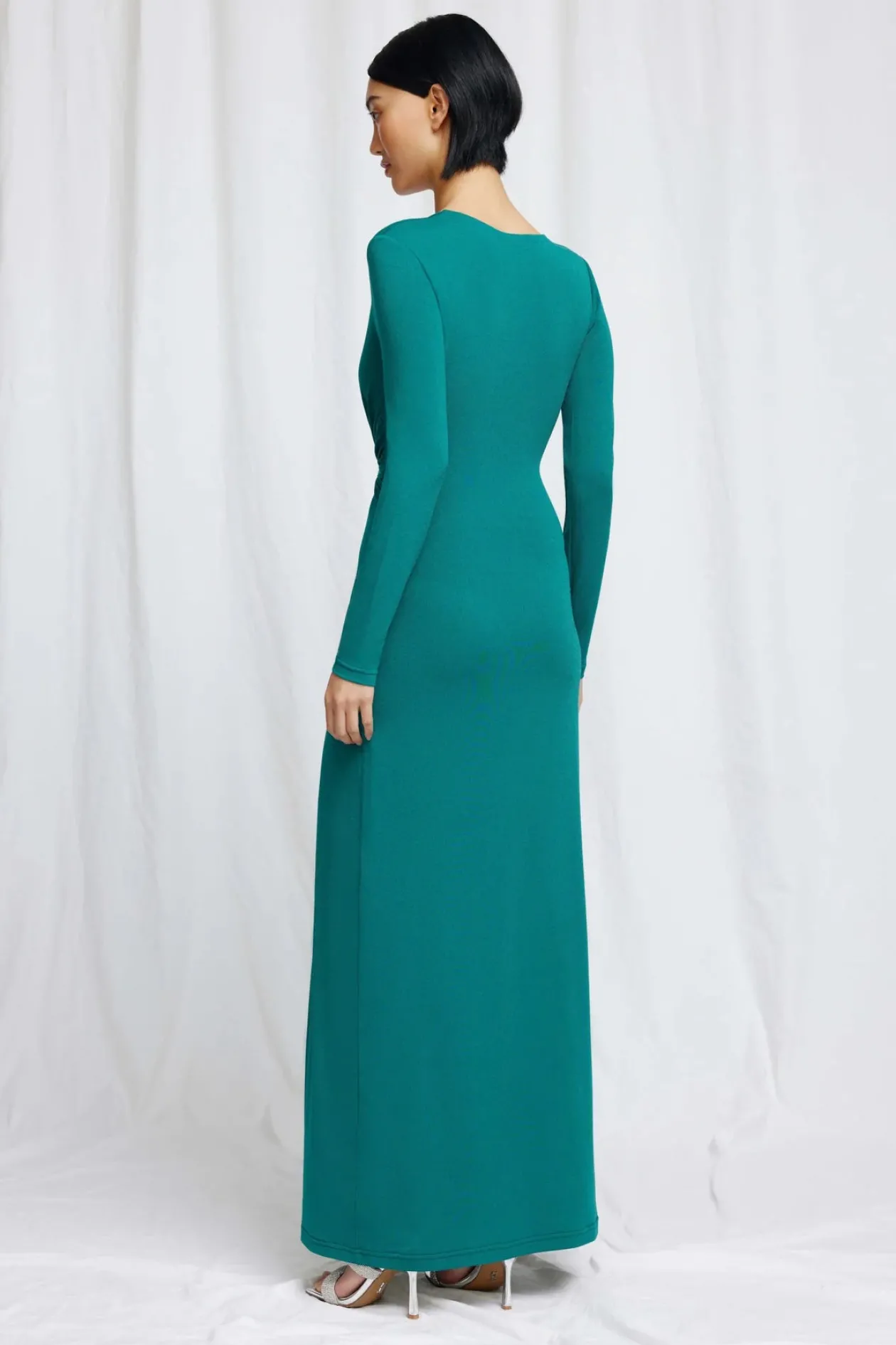 Crafted from our buttery soft jersey fabrication, the Minnie Maxi Dress in Jade is designed to be fitted through the bodice and relaxed toward the hem. Featuring full length sleeves, twisted fabrication detail, front bodice cut out and accentuated split.