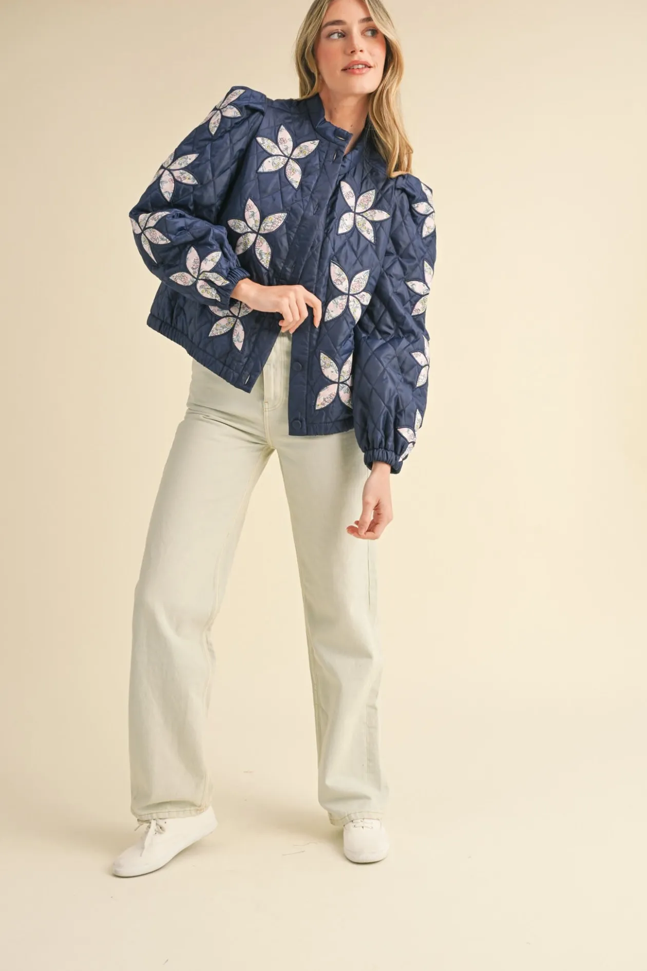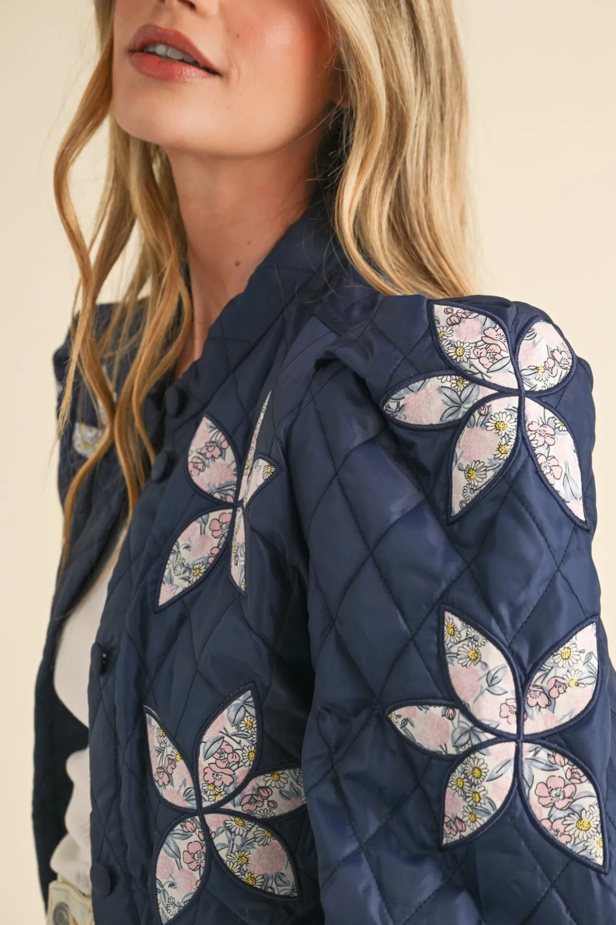 - Quilted jacket with floral patchwork
