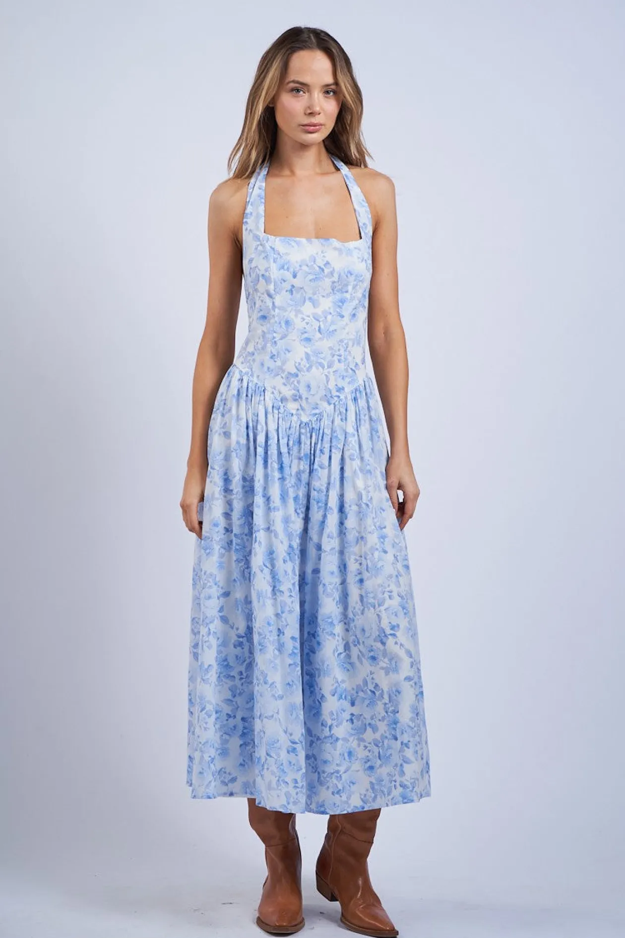 The Talitha Halter Midi Dress combines bold, vibrant florals with a flattering square neckline for a look that’s both fun and feminine. The sleeveless design and adjustable halter tie offer a comfortable, customizable fit, while the back zipper ensures easy wear. Perfect for sunny days or special outings, this dress is a statement piece that brings both style and charm.