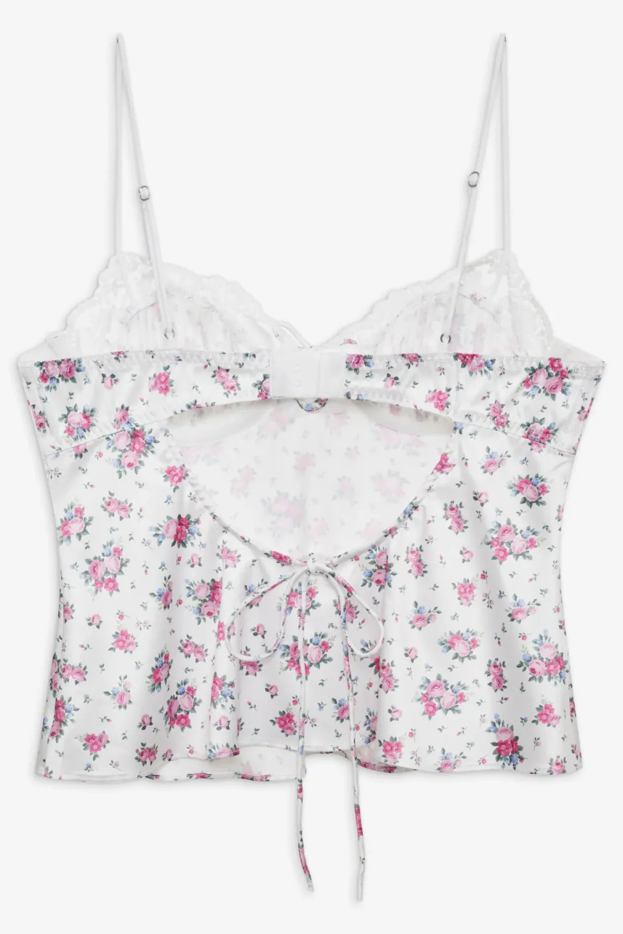 A sweet and sultry style for all your Valentine’s Day moments, the That’s Amore satin camisole exudes timelessly feminine appeal. Crafted in satin with an all-over ditsy floral print, this underwire cami top is decorated with lace trim and a center-front bow.