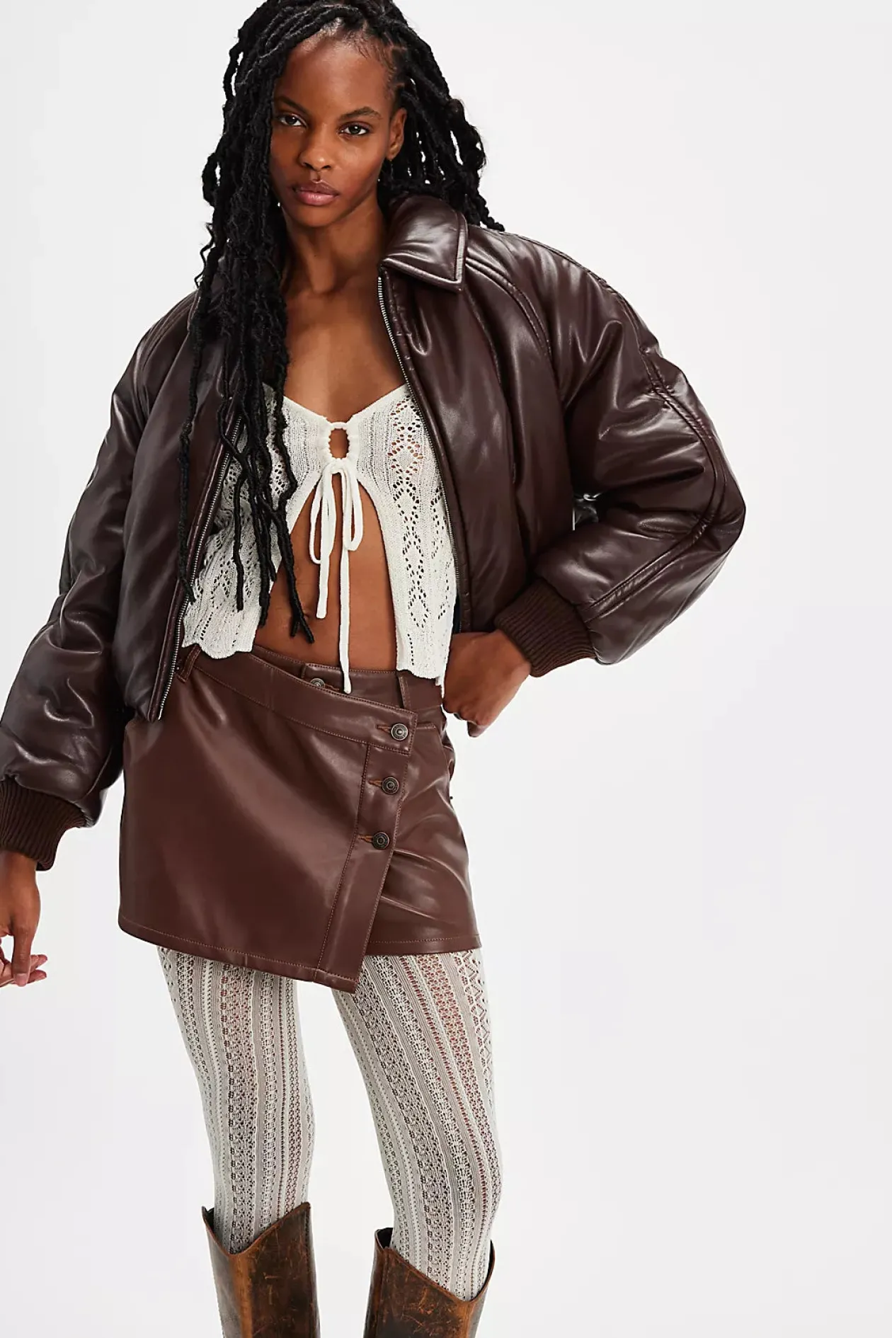 Sleek and statement-making, this timeless vegan leather skirt from our We The Free collection will be a staple from this season to the next.
