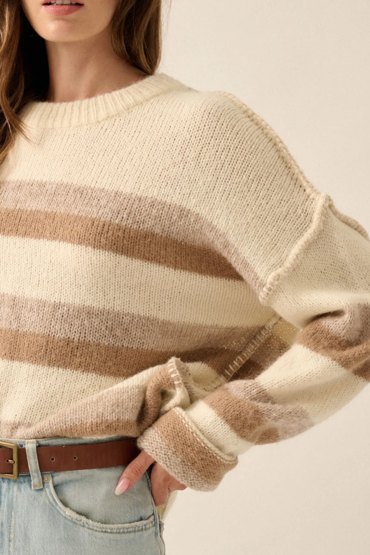 - Striped colorblock knit sweater
