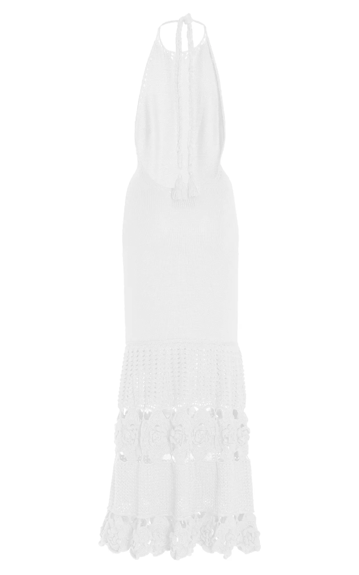 This ‘Carina’ bamboo-knit dress has a summery halter silhouette with an open back and a beautifully crocheted hemline. Dress it up for alfresco dinners with simple strappy heels.