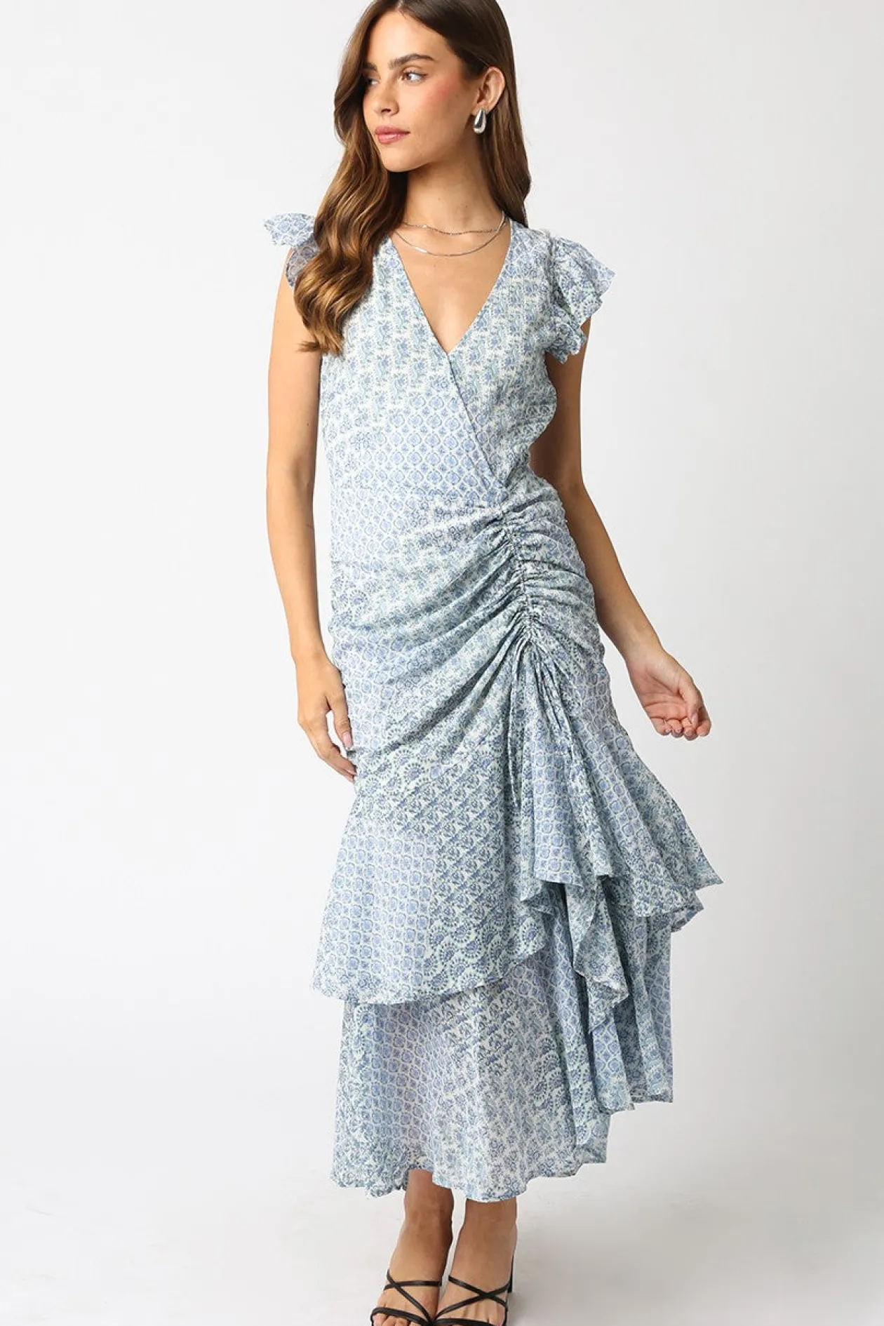 Our Aria Maxi Dress features shirring details and a V neckline.