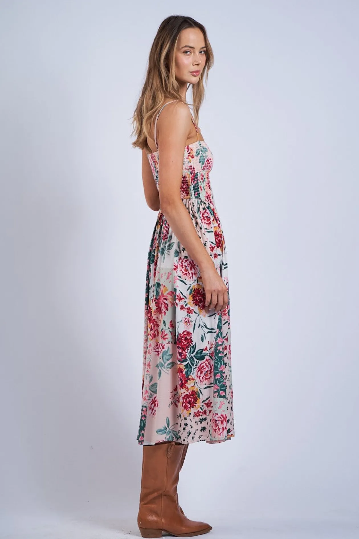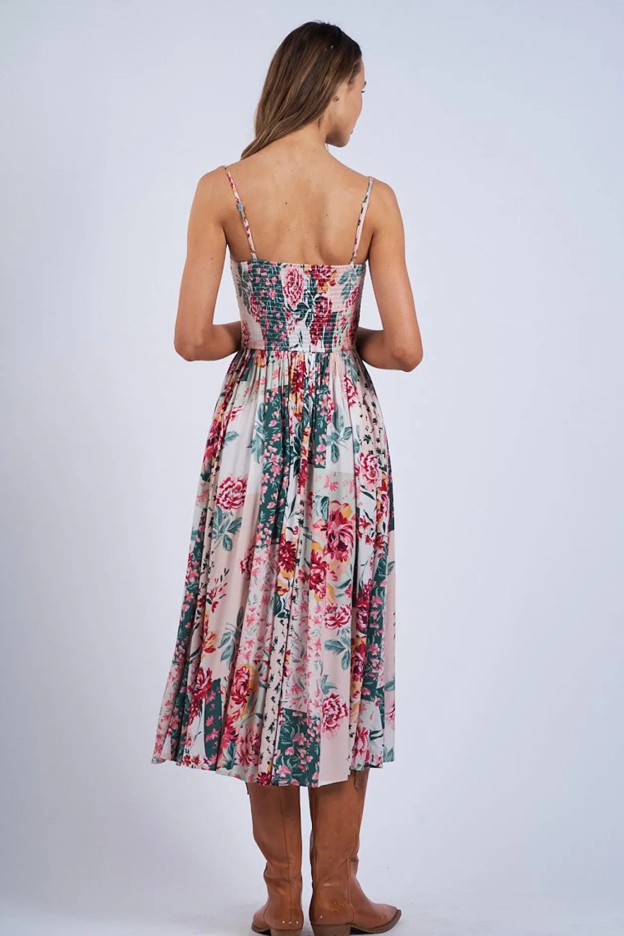 Our Ayla Patchwork Smocked Midi Dress features a beautiful patchwork print perfect for transitioning you into the warmer spring days! Adjustable shoulder straps and a smocked body make this piece ultra-flattering and comfortable.