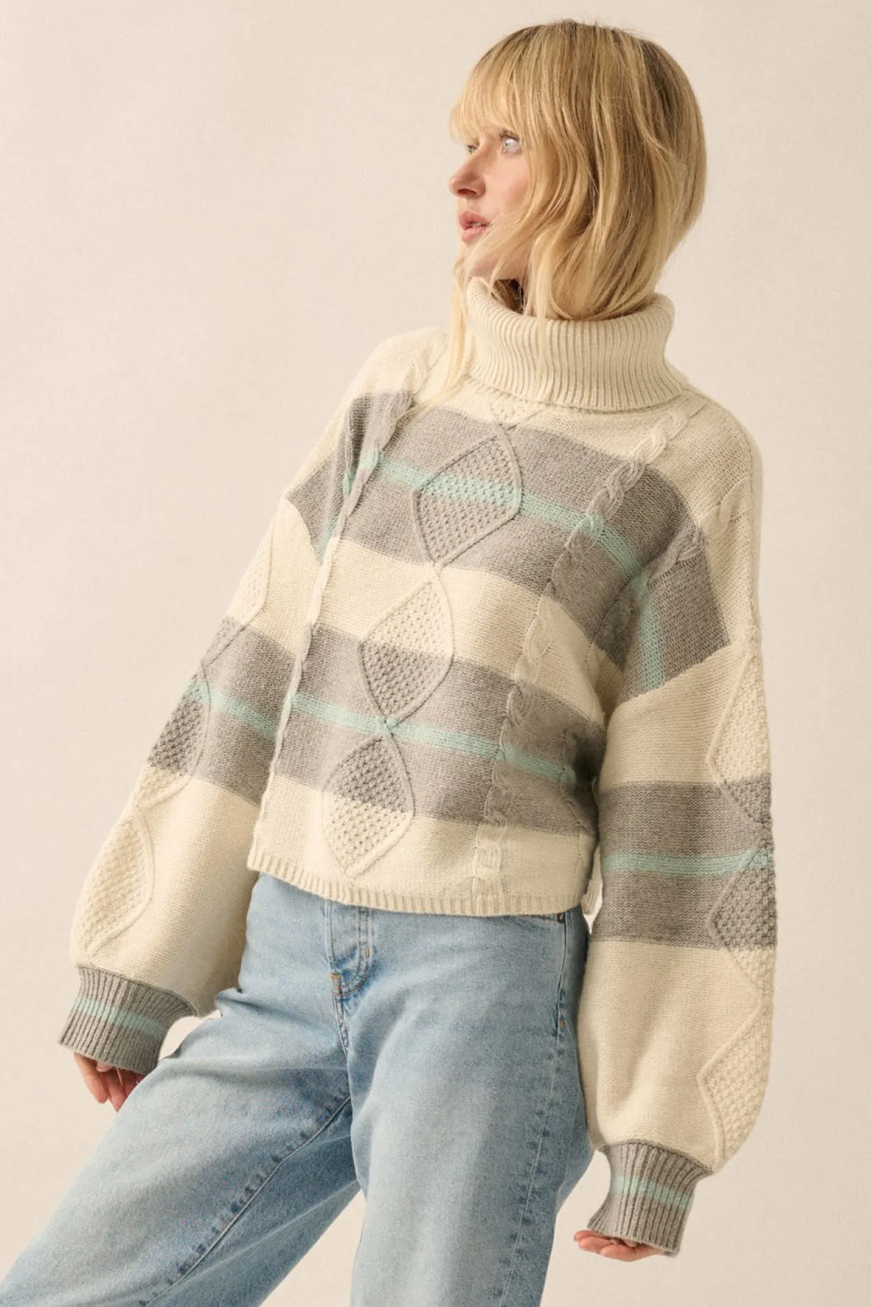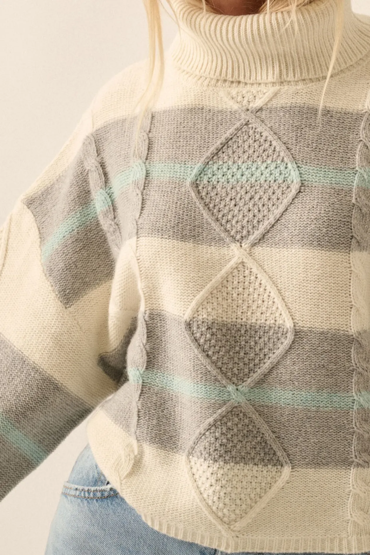 Camille Striped Cable Knit Turtleneck