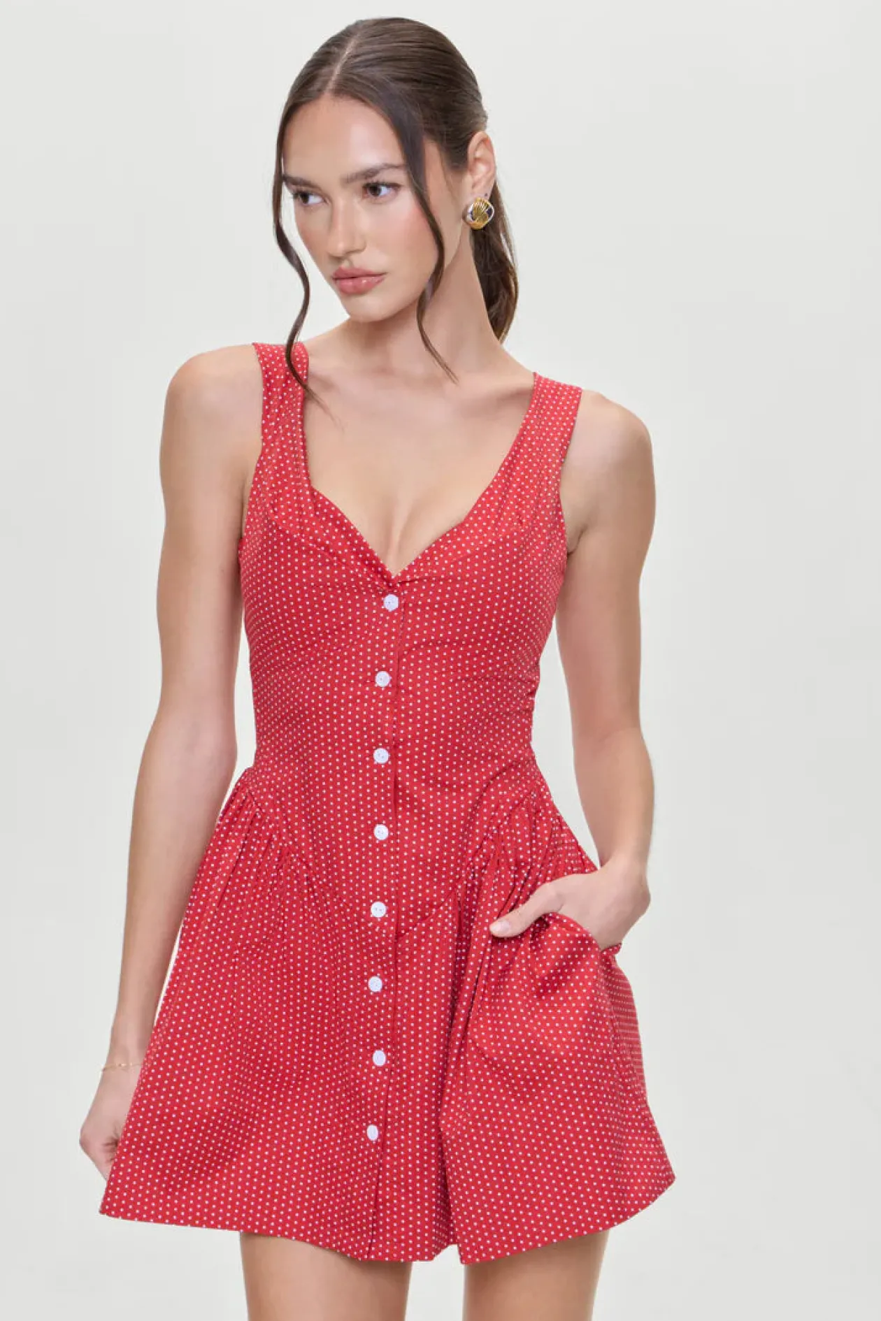 This tailored mini dress features a wide neckline and functional buttons down the front. The Charlotte Mini Dress will make you feel your prettiest, whether you’re heading to a spring brunch or dancing through the night.