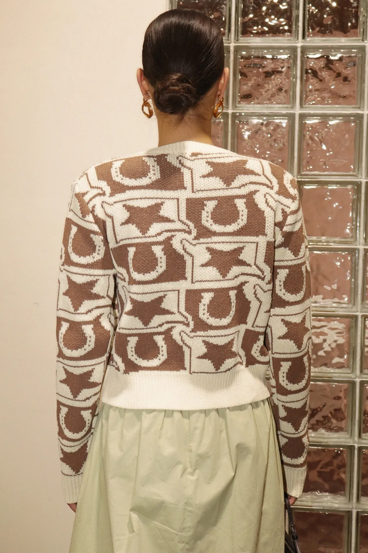 This gorgeous cardigan with star patterns is available in tan and pink.