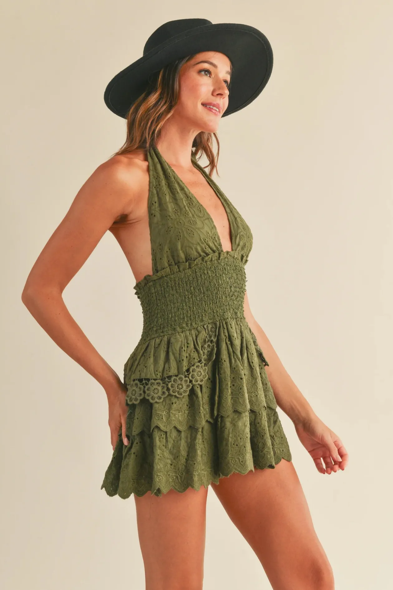 The halter neckline delicately showcases your shoulders and collarbones, adding an alluring touch to the overall look. Its flattering cut skims the contours of your body, emphasizing your natural curves while maintaining a comfortable fit.