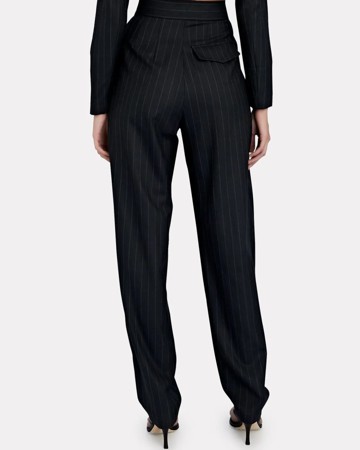 Modern minimalism is at the core of each of Ronny Kobo’s collections. Tailored from a pinstriped blended wool, these pants sit high on the waist and are enhanced by pleats and concealed closures. Style the tapered leg silhouette with a crisp shirt and the matching top.