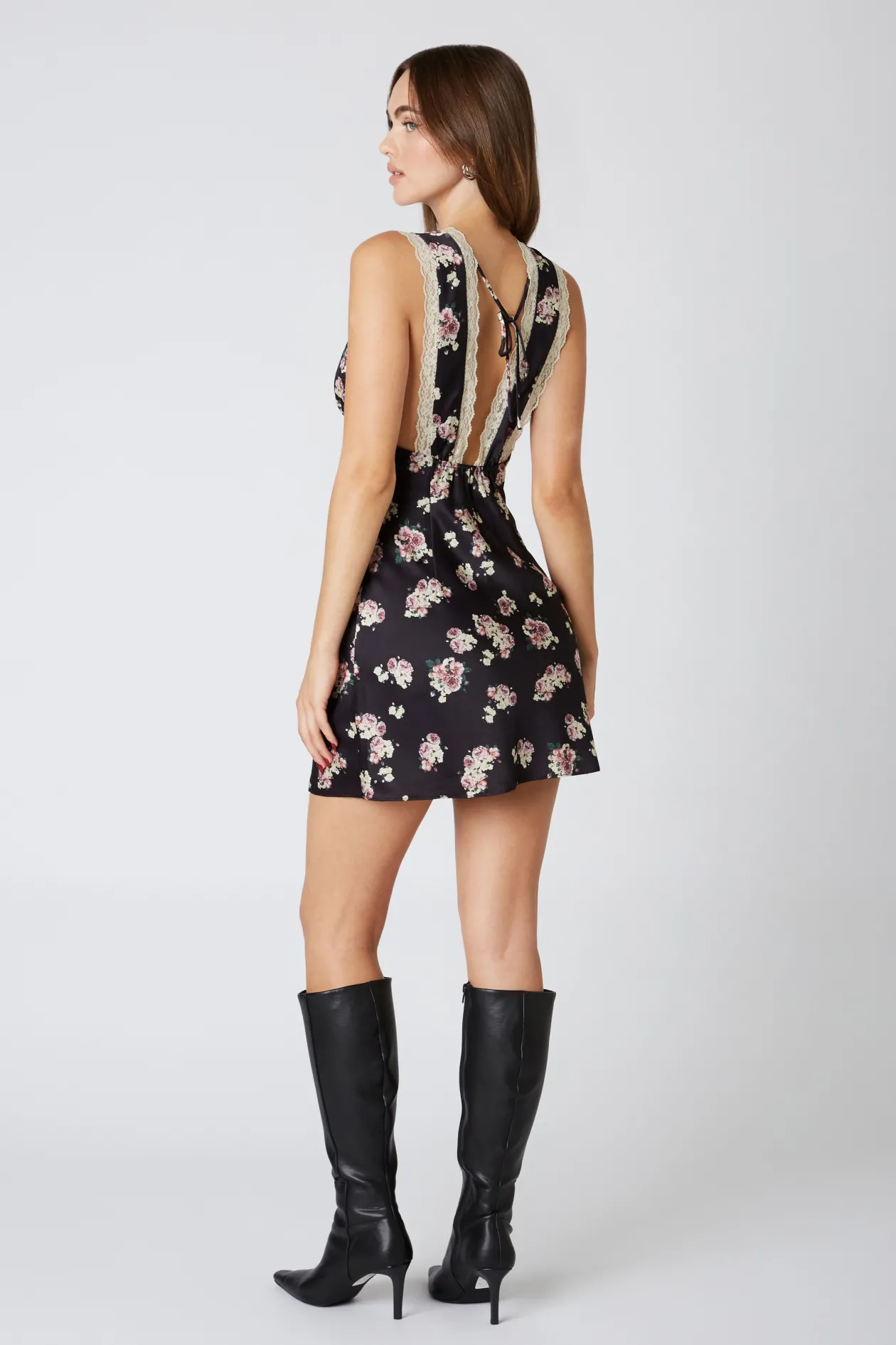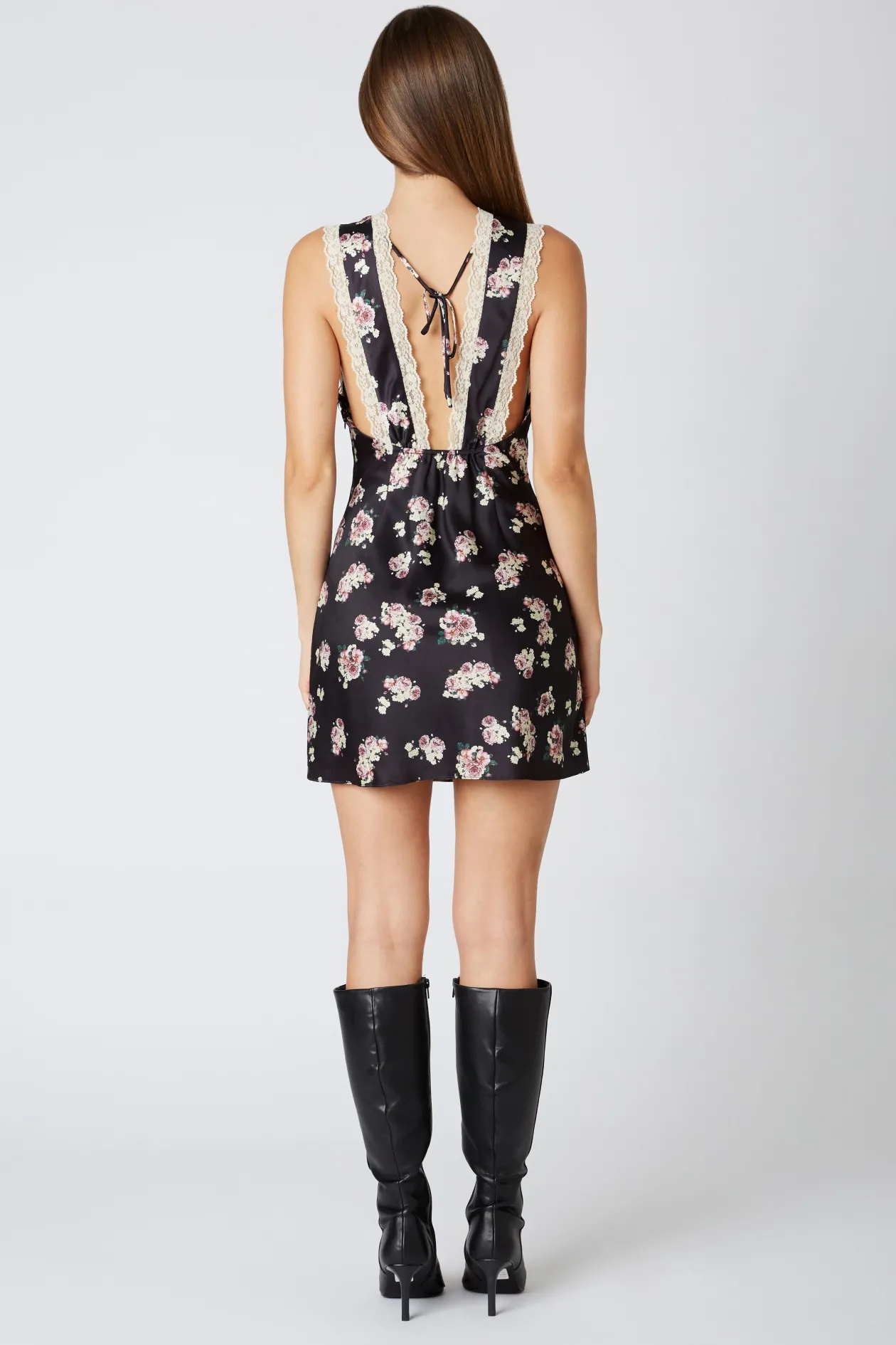 Floral Print Slip Dress in Black