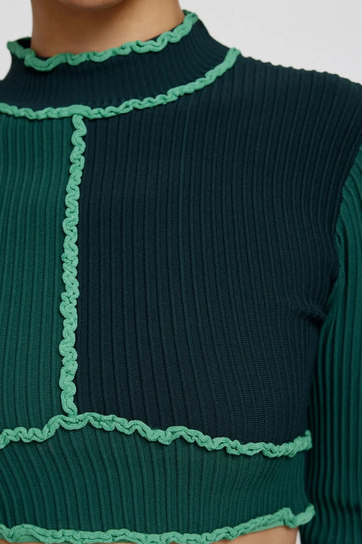 Classic knitwear pieces have seen an update this season. Crafted from a chunky textured rib knit, the Ginny Long Sleeved Top in Teal Mix embraces texture. Featuring a mock neckline, full length sleeves and a contrasting ruffle yarn trim. Pair with the Ginny Skirt for a complete look.