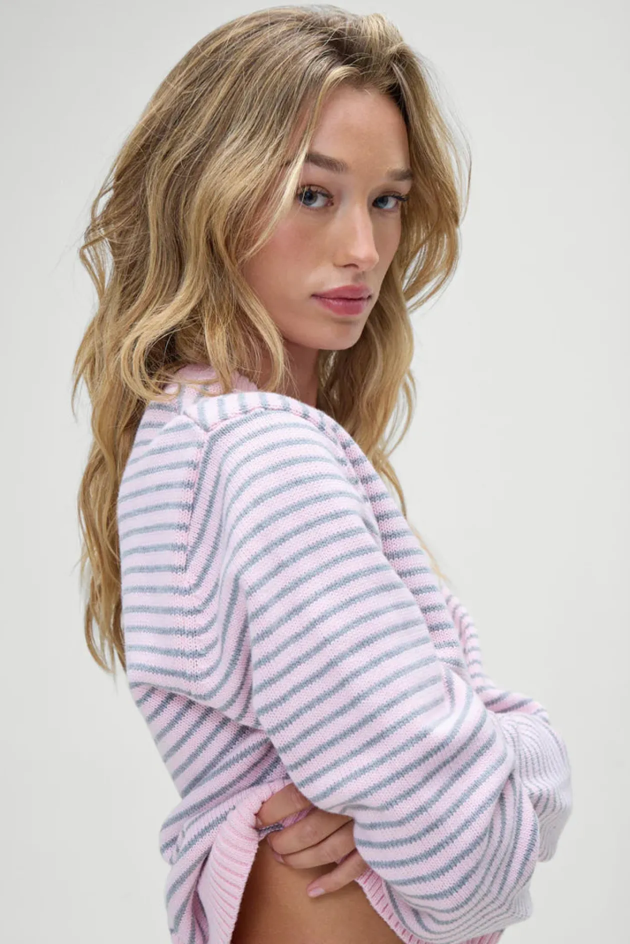 Settle into fall with the Kip sweater. Made from soft cotton knit fabric, this crewneck sweater is an excellent outfit staple for enjoying the city’s cozy indoor spots.