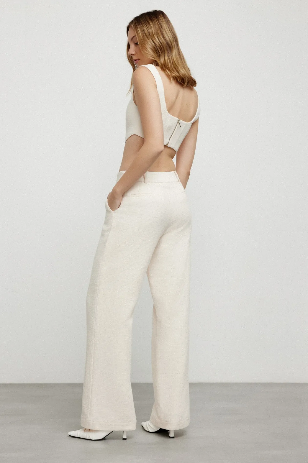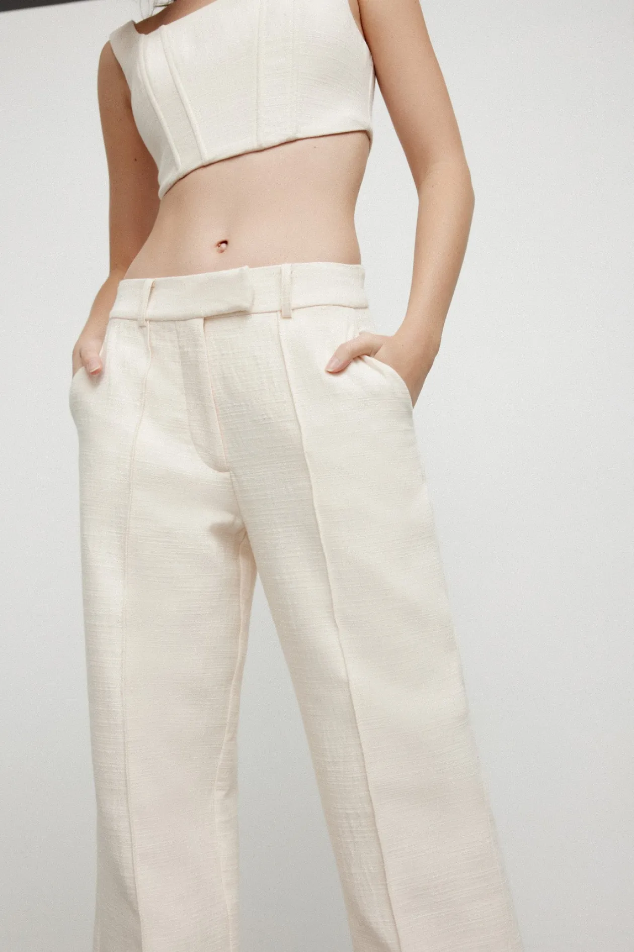 A classic silhouette, the perfect addition to your capsule wardrobe. The Leila Pant in Ballet Pink is crafted from our easy wear suiting fabrication. This slouchy tailored trouser features inseam pockets, front fly closure and back mock pockets. Pair with the Leila Top for a complete look.