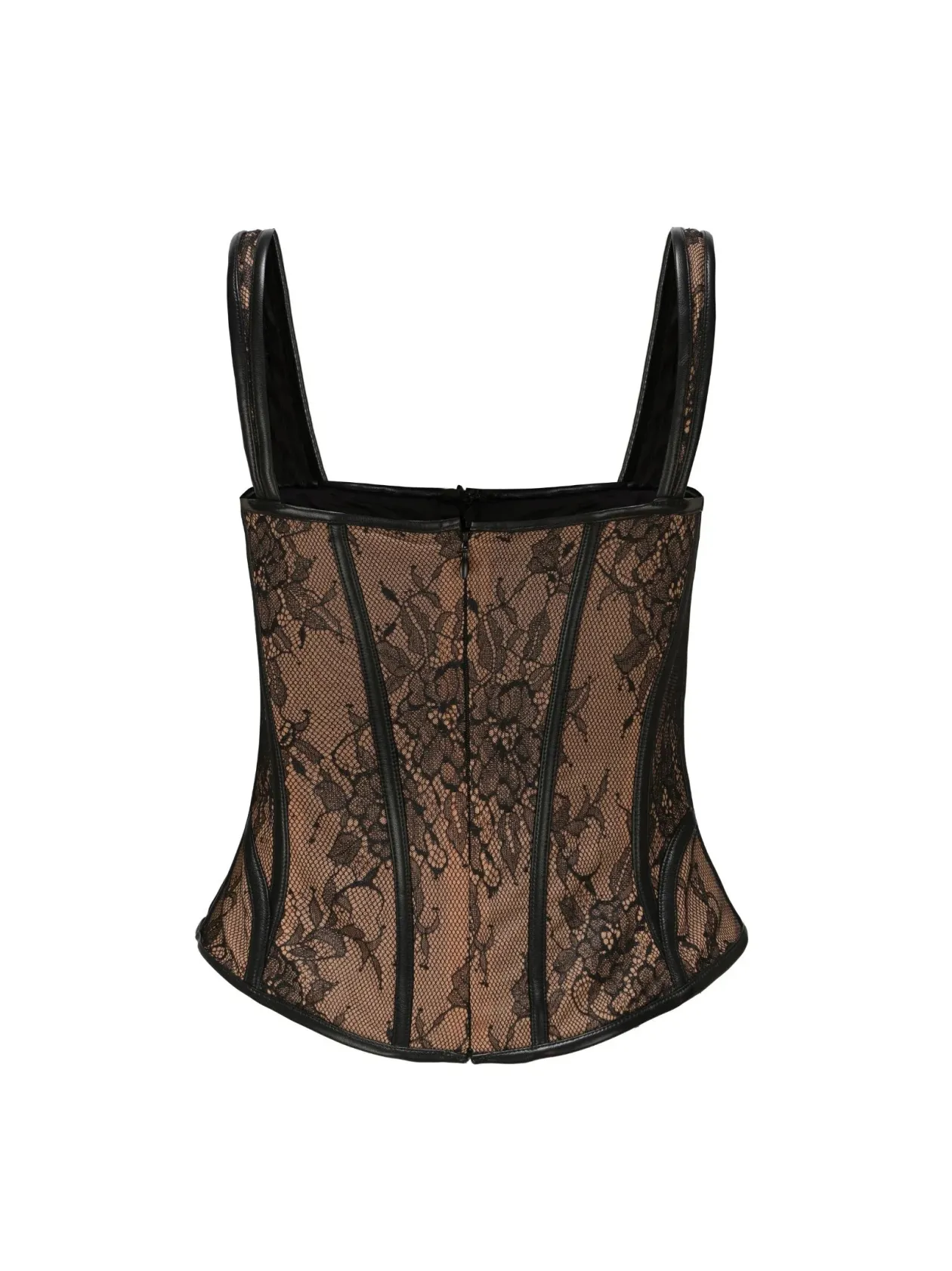 Fall in love with the Emily Lace Top. This chic and inviting top is an ideal seasonal staple that can be worn on a warm day or paired with a trench. The lace and skin-colored cushion adds depth and sexiness to the design.