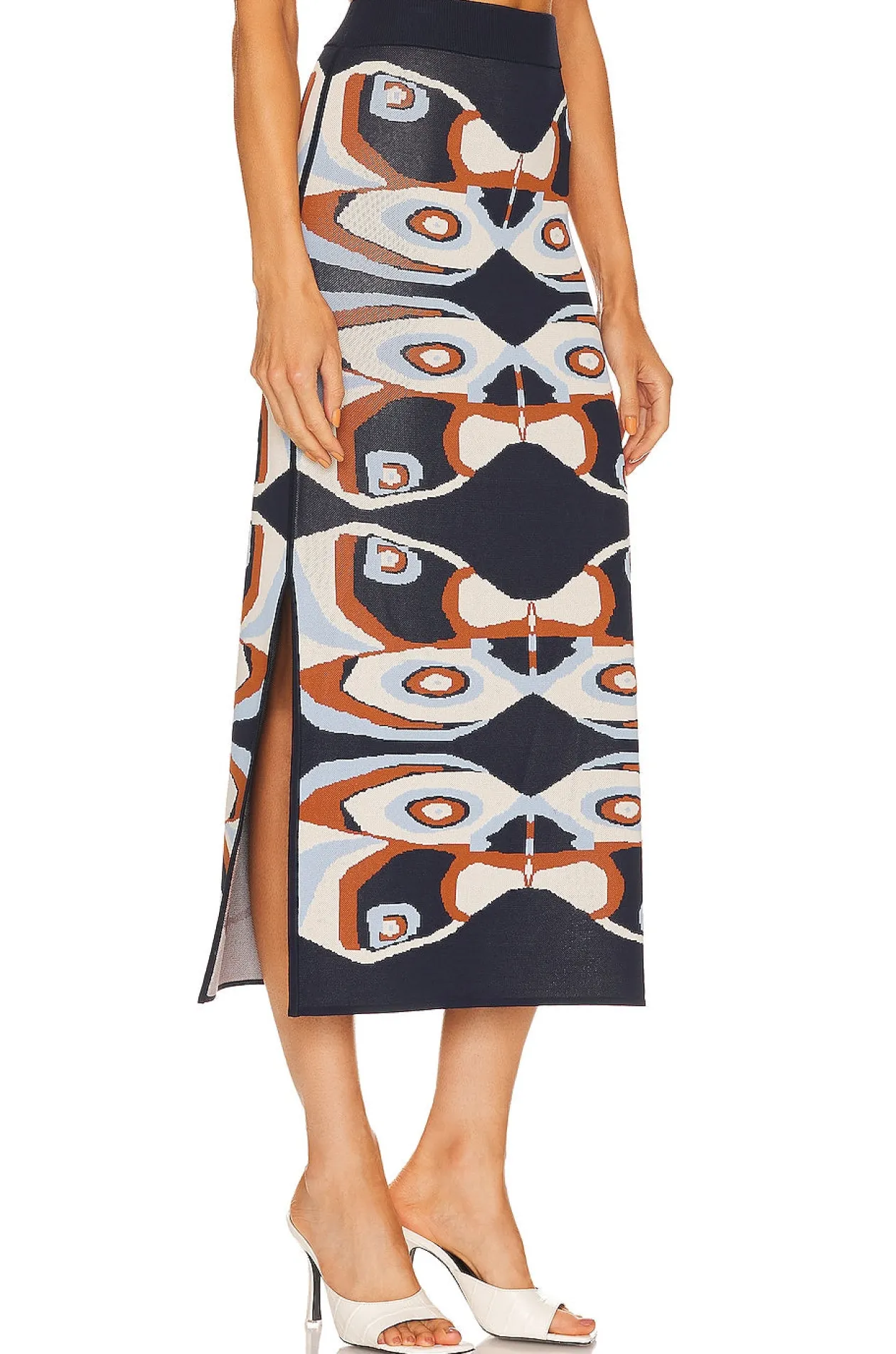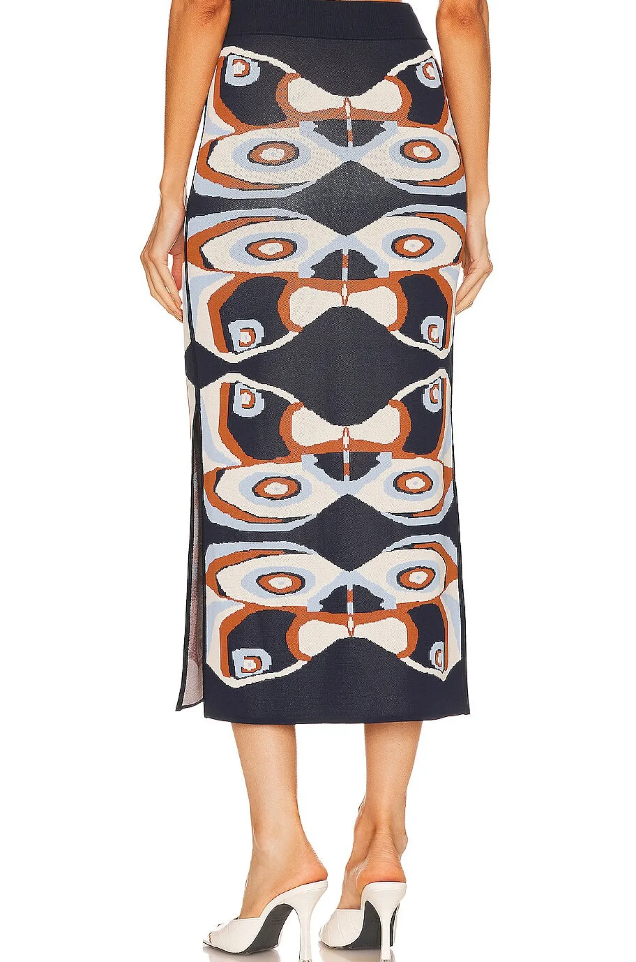 Pull-on styling with elastic waistband. Midweight ponte fabric with side seam slit. Unlined.