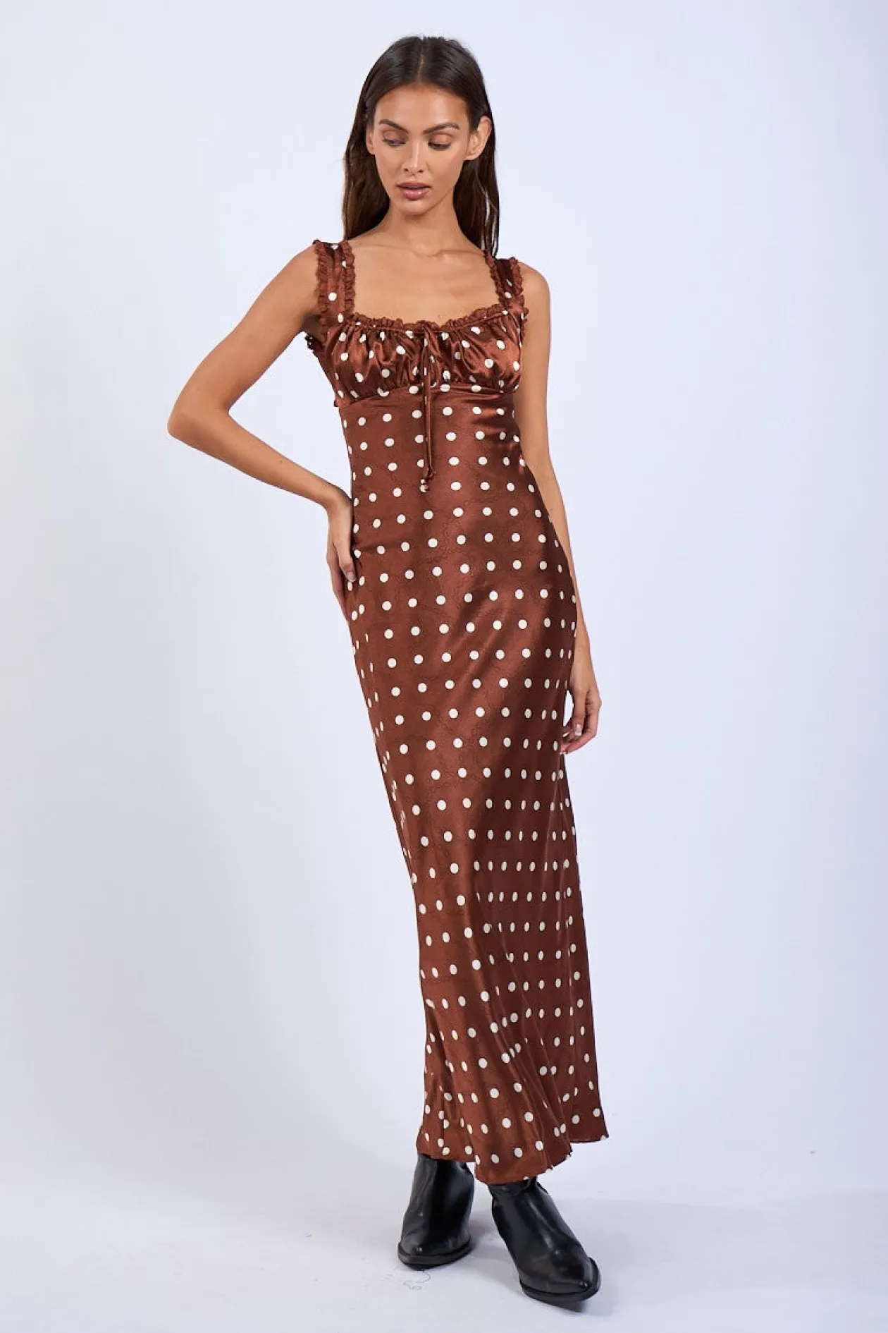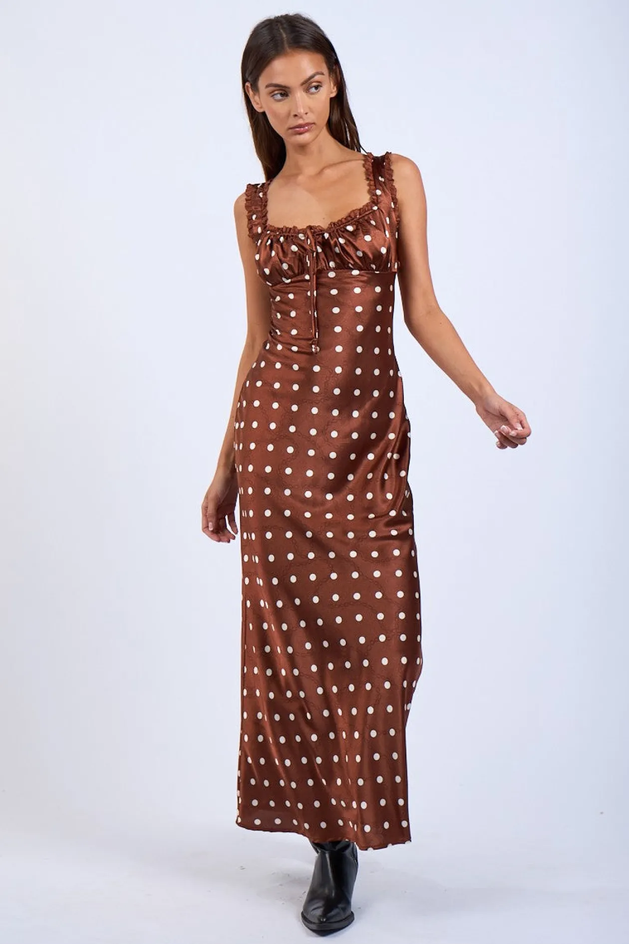 - Satin Brown Polka Dot Print
