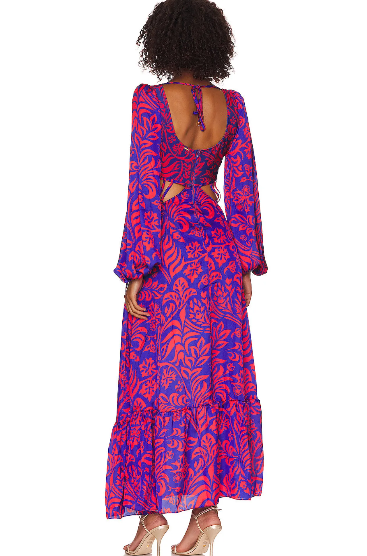 Patbo’s latest hybrid dress features a built-in bodysuit made from stretch Lycra fabric attached to billowing sleeves and an a-line skirt made from silky crepe.