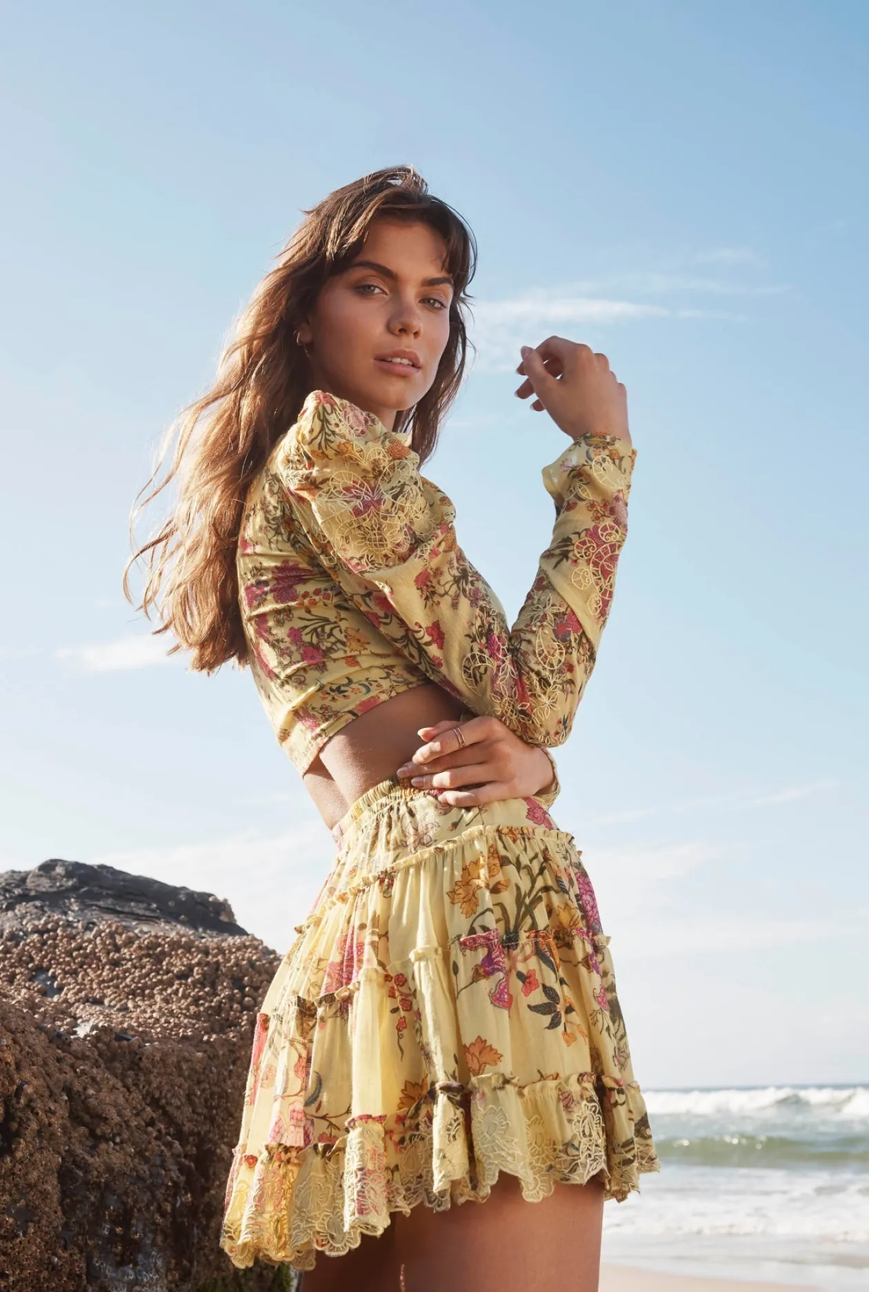 The Pria Crop Top is from the Spring 22 collection featuring leg-off mutton sleeves. Style this crop top with Pria Short Skirt along with a pair of transparent heels, head scarf, and gold jewelry to complete the perfect look.