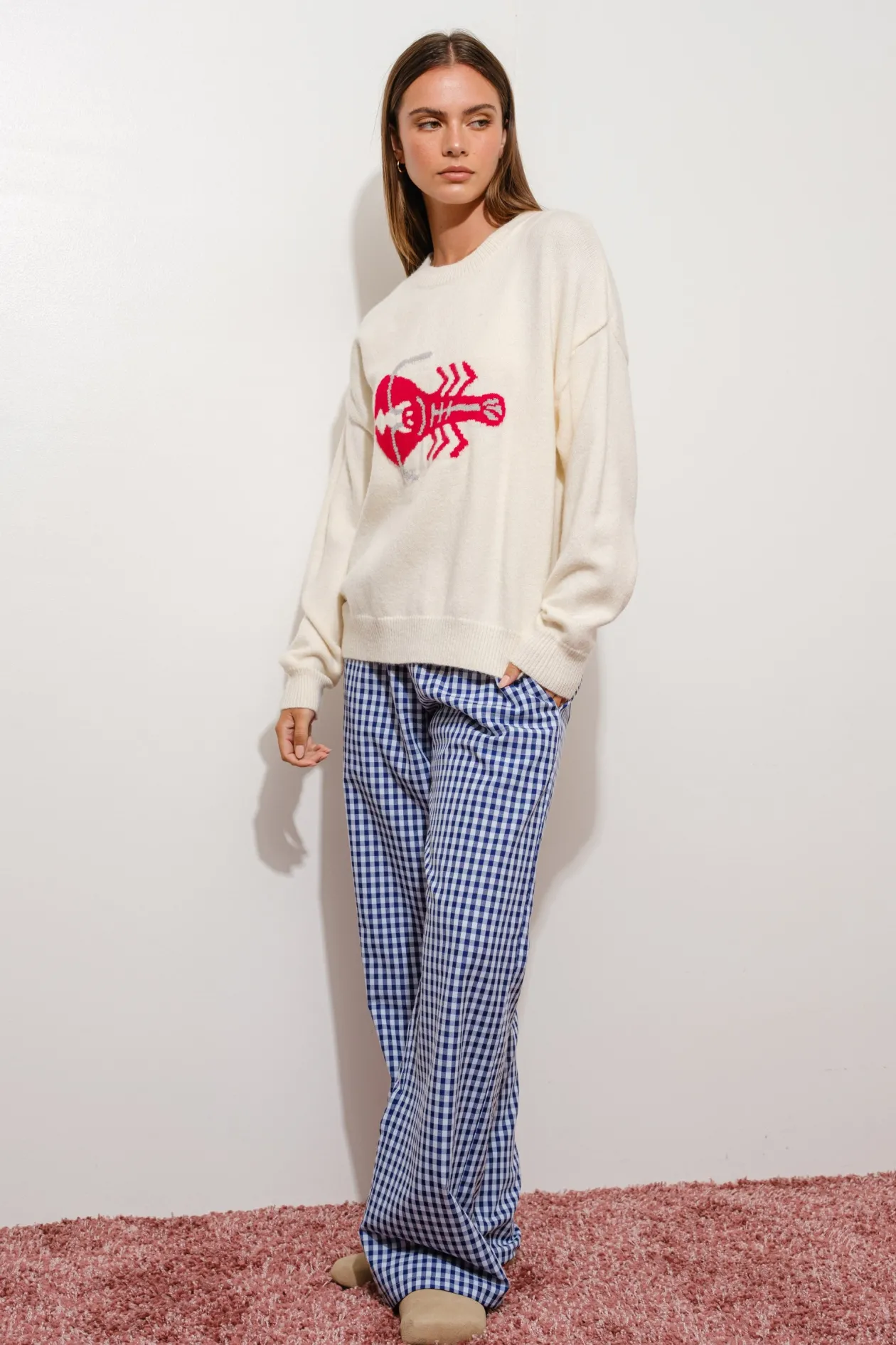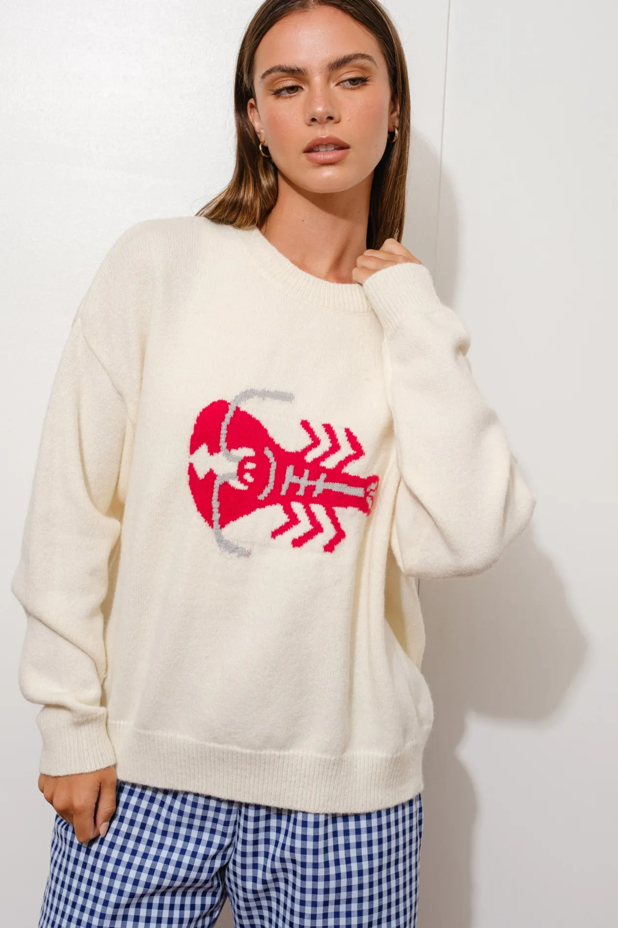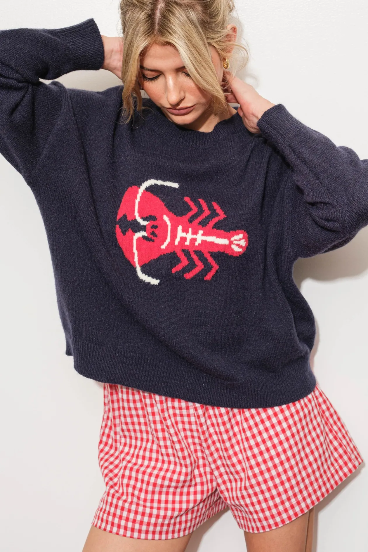 Our best selling lobster sweater is back in stock! Available in navy and ivory.