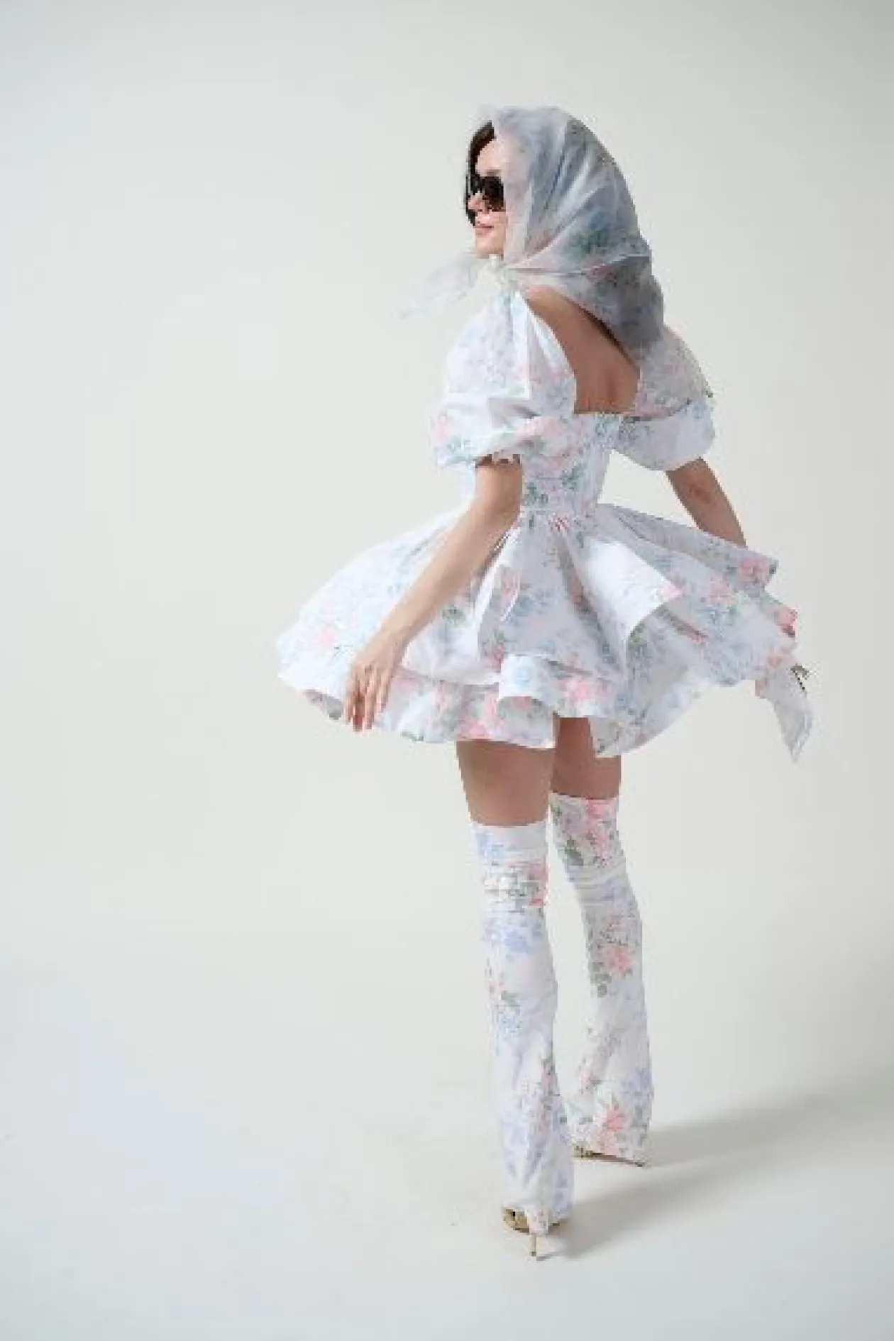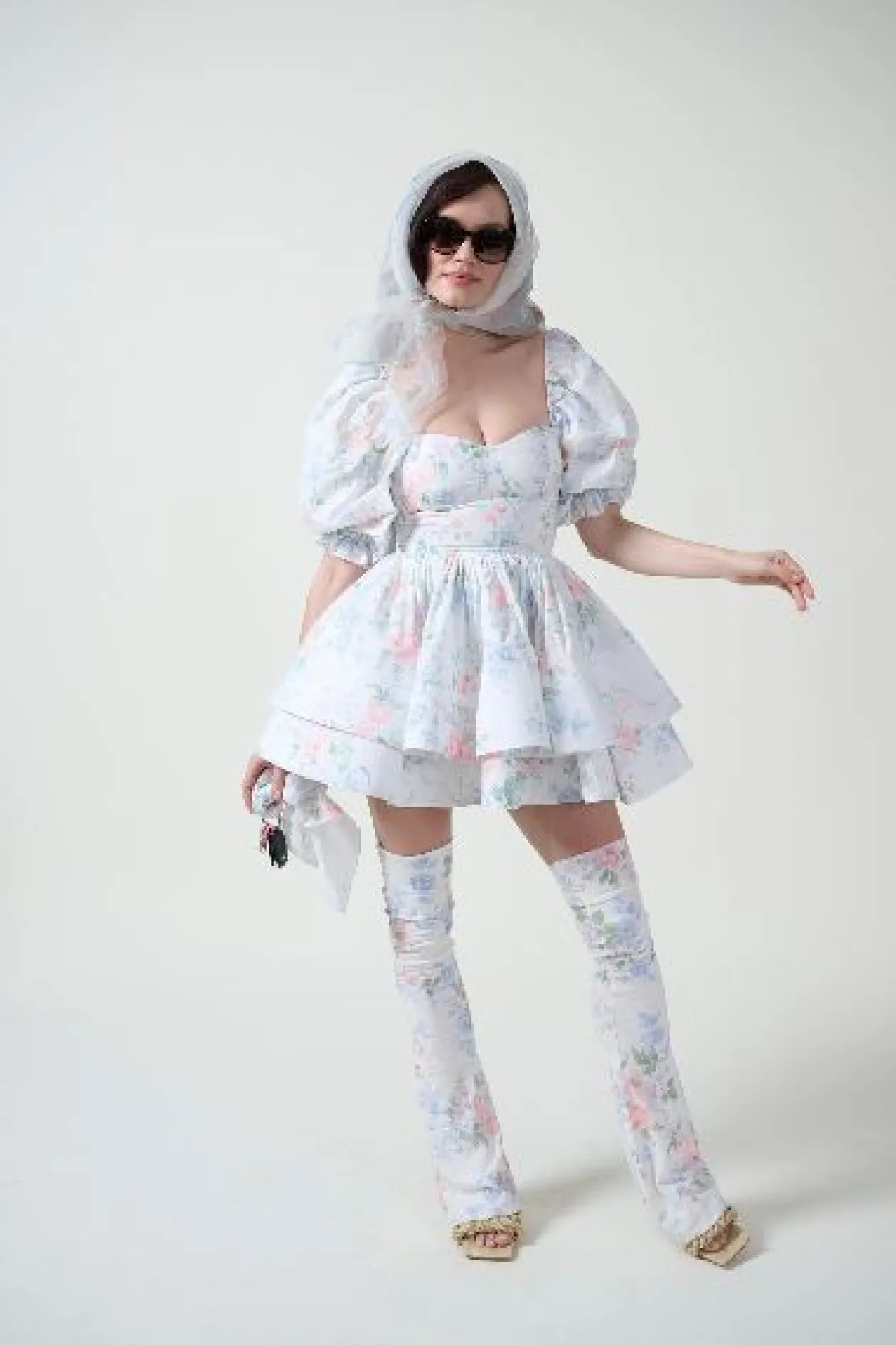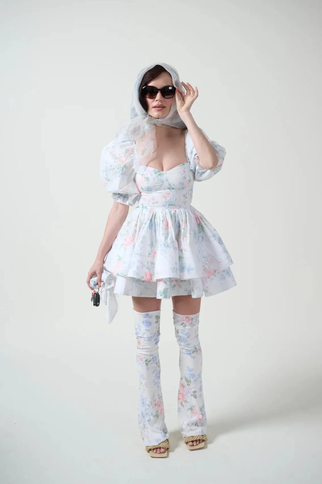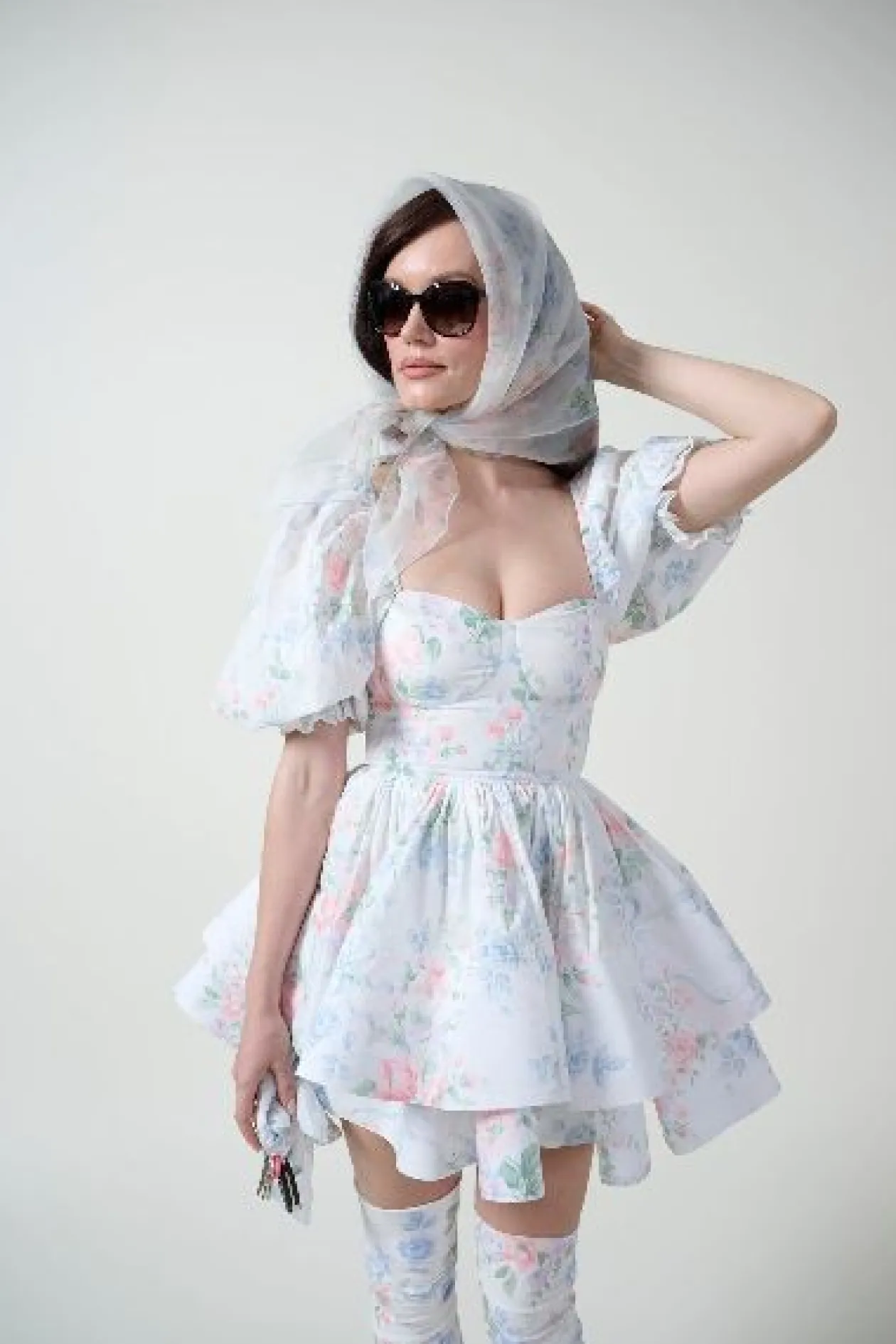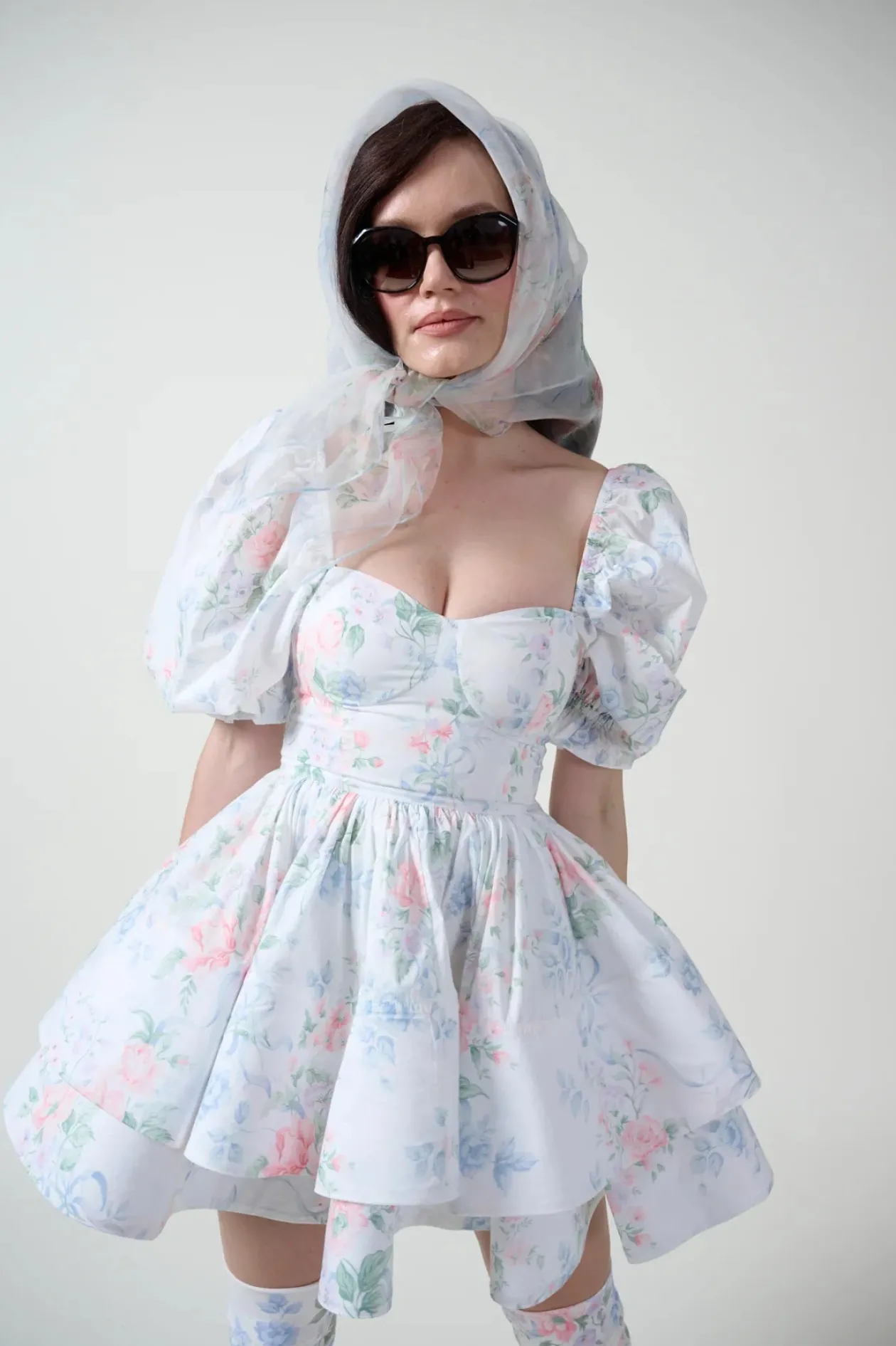 - Cotton mini dress with underwire cups and puff sleeves