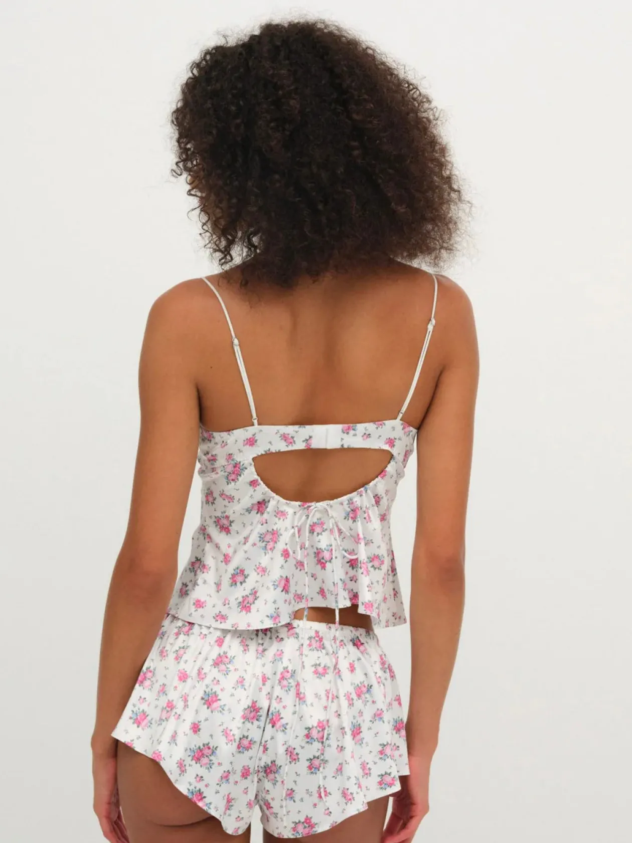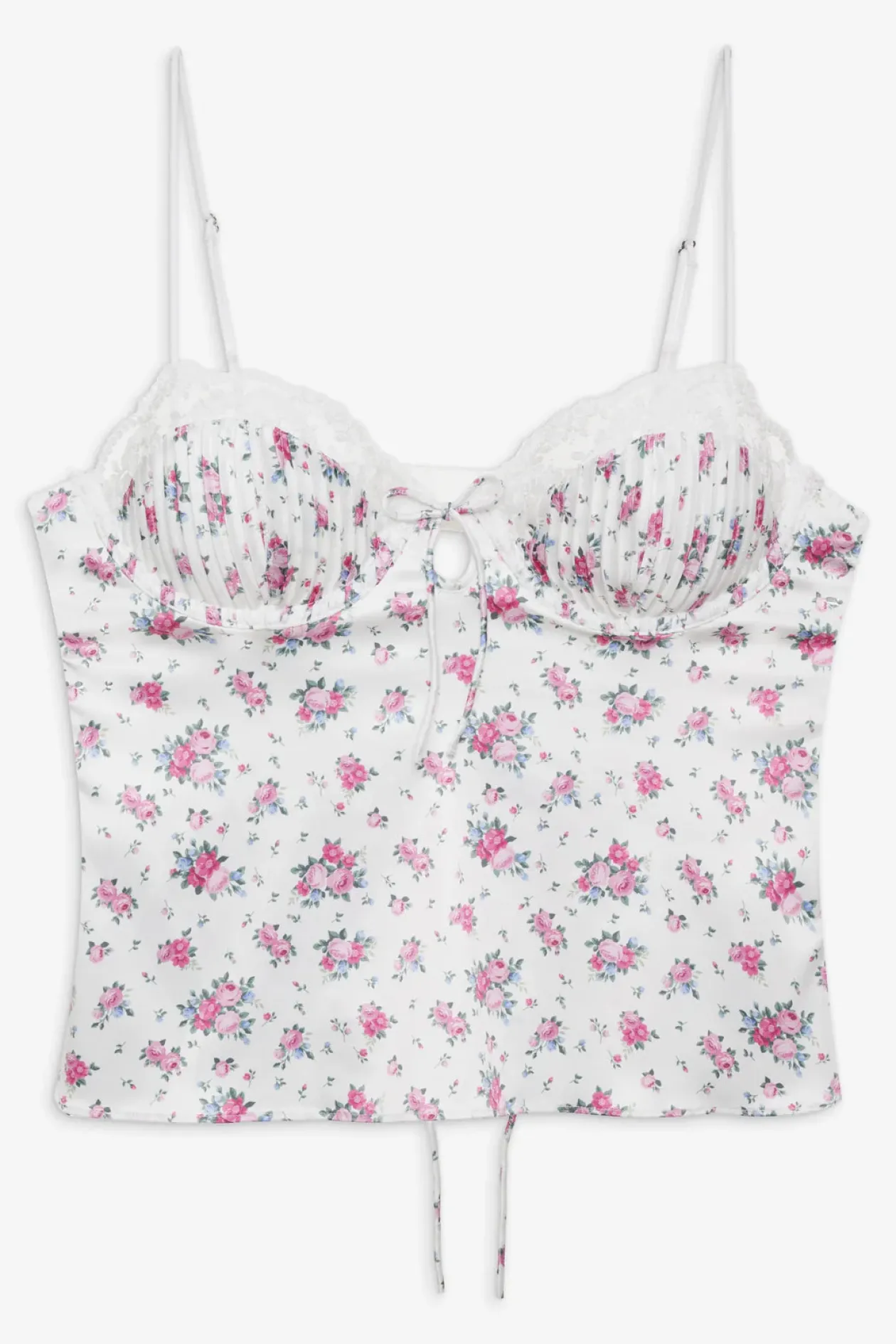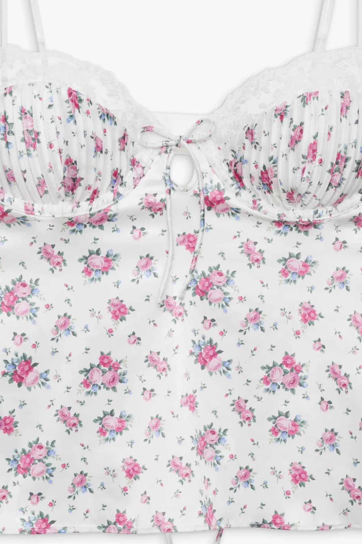 A sweet and sultry style for all your Valentine’s Day moments, the That’s Amore satin camisole exudes timelessly feminine appeal. Crafted in satin with an all-over ditsy floral print, this underwire cami top is decorated with lace trim and a center-front bow.