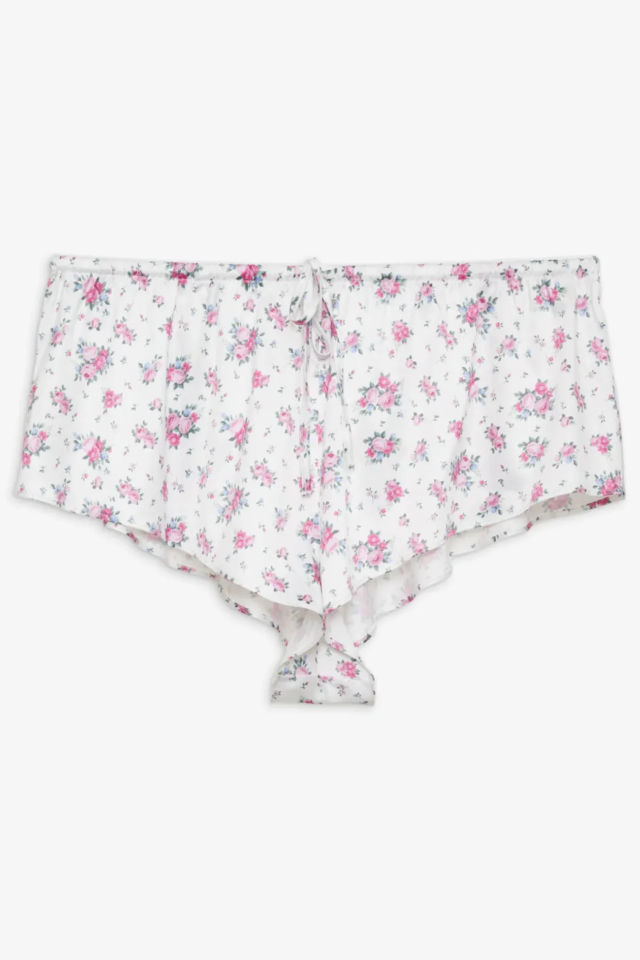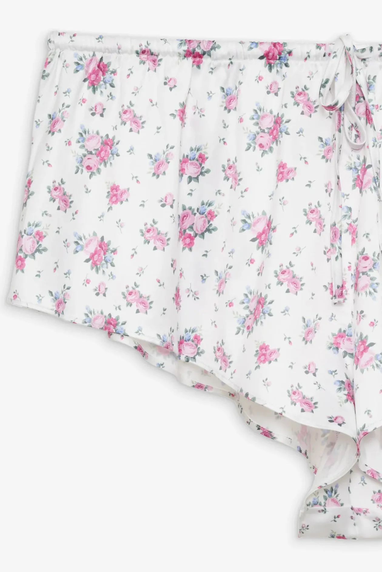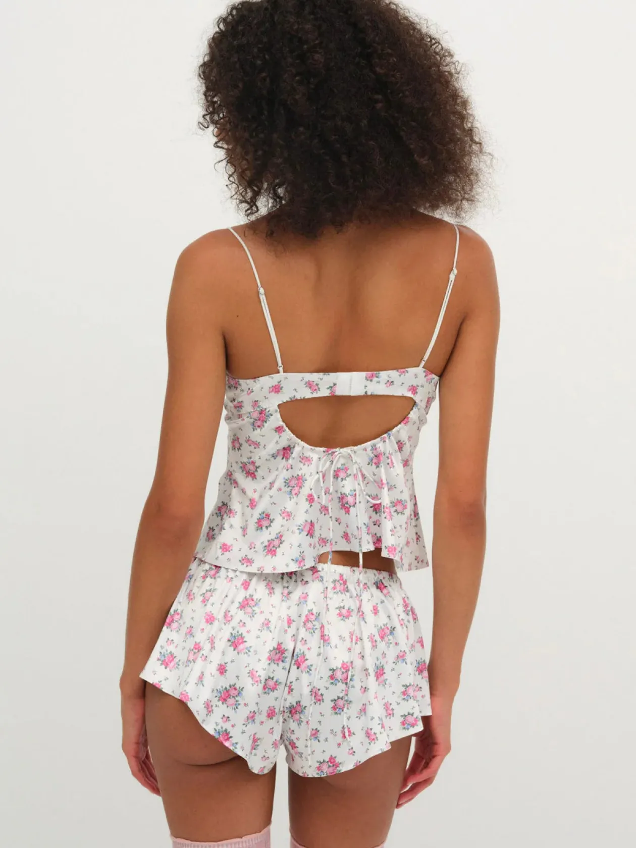 Inspired by vintage kitsch motifs, the That’s Amore sleep short makes for the perfect at home Valentine’s Day ensemble. This sweet and feminine pajama short is crafted in a dainty floral printed satin, spotlighting a gathered waist.
